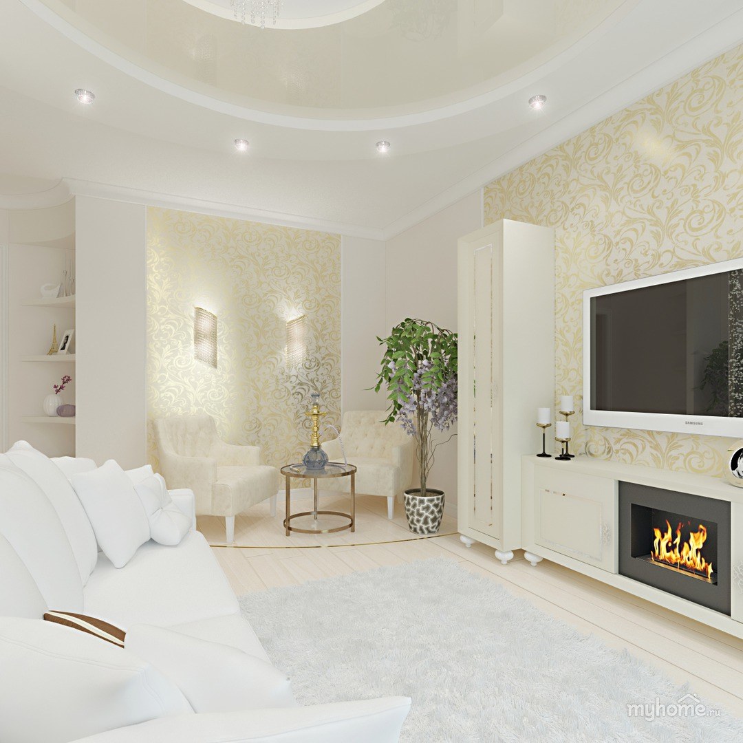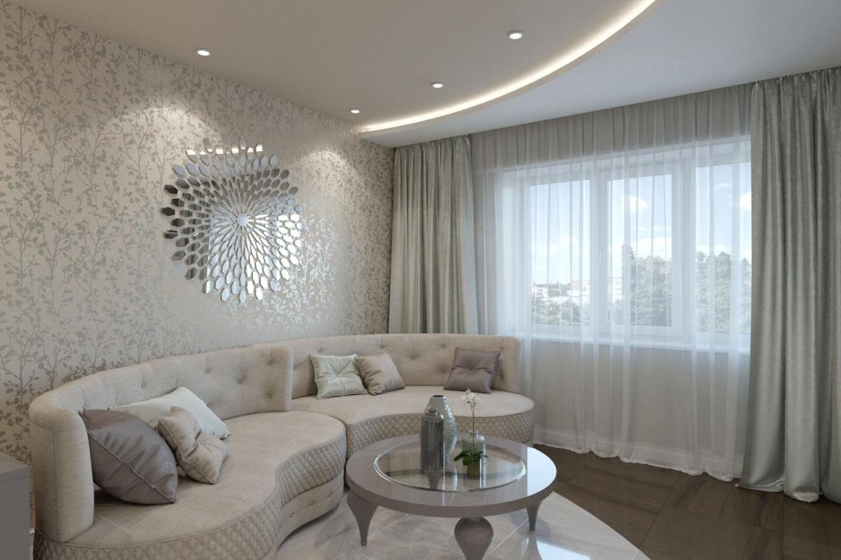 Обои в гостиной в интерьере в светлых тонах (63 фото)