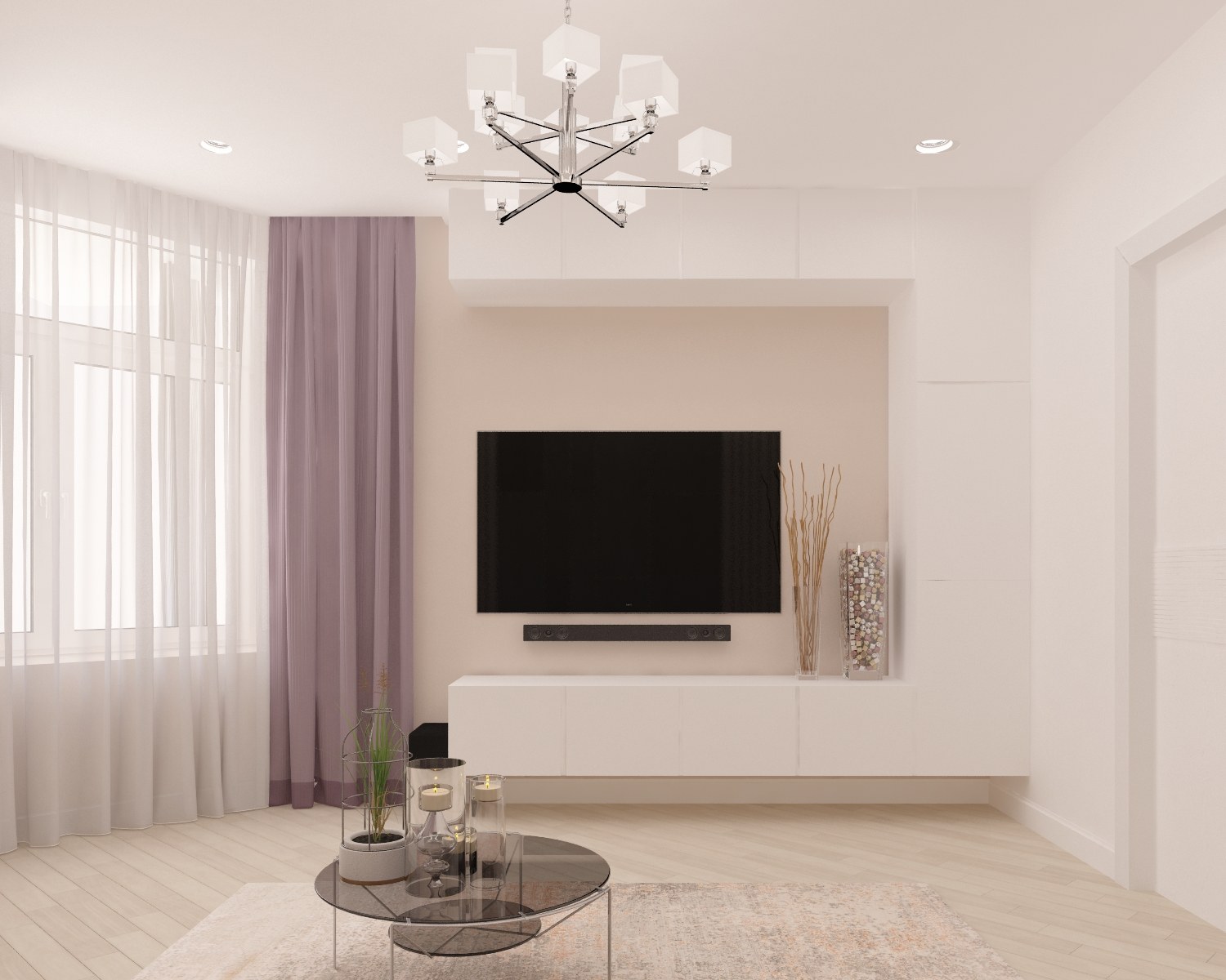 Современная гостиная в светлых тонах