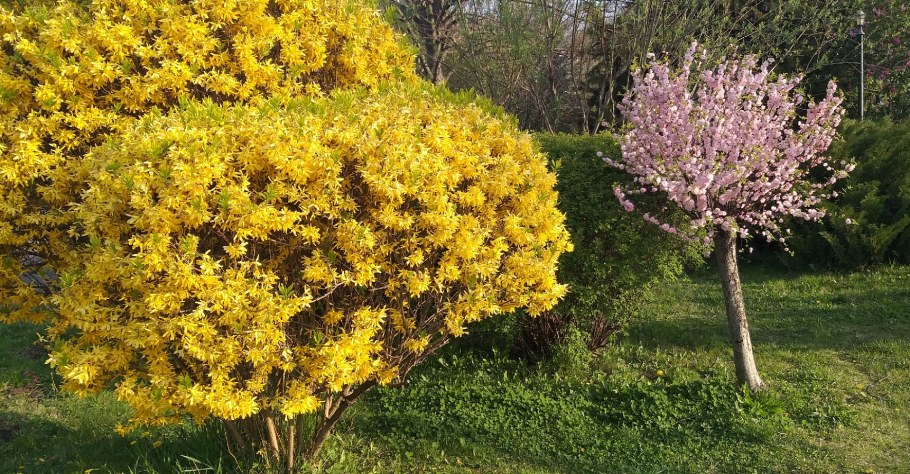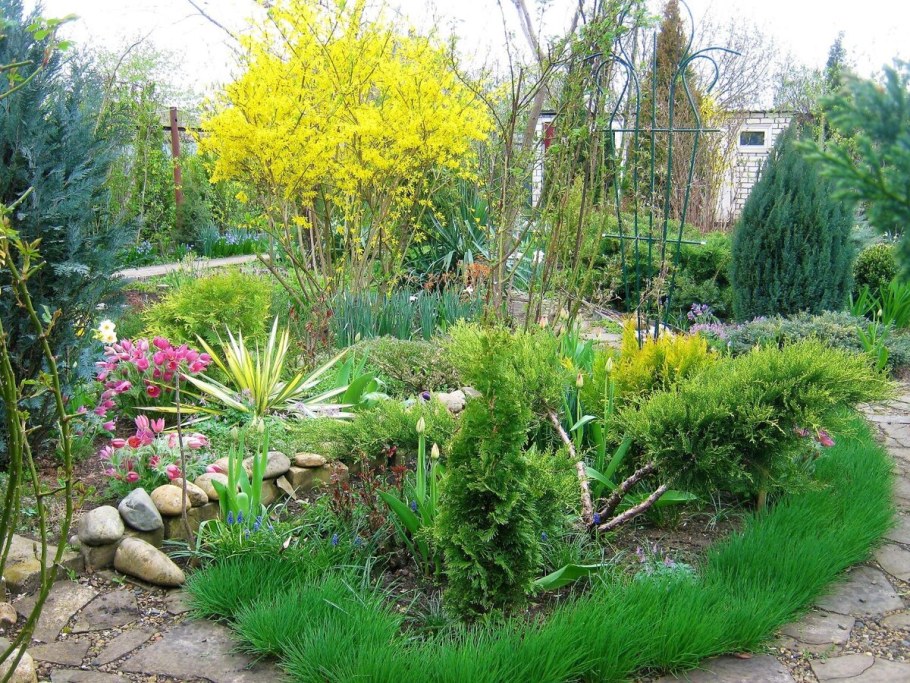 Форзиция в ландшафтном дизайне с чем сочетается (58 фото)