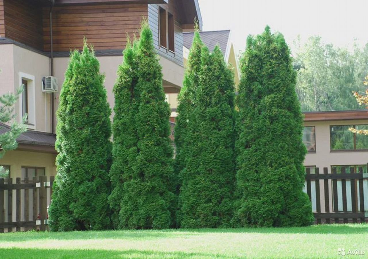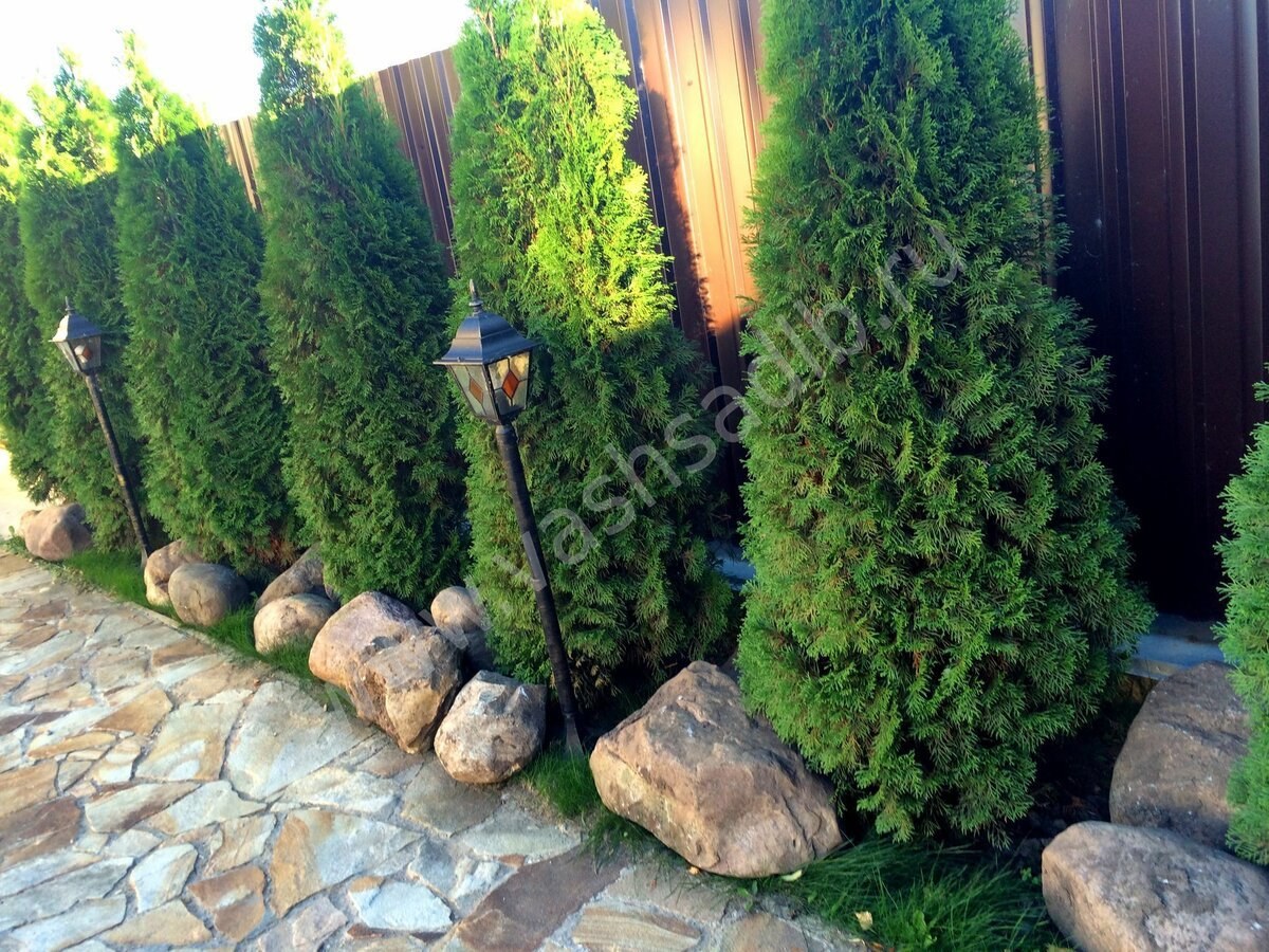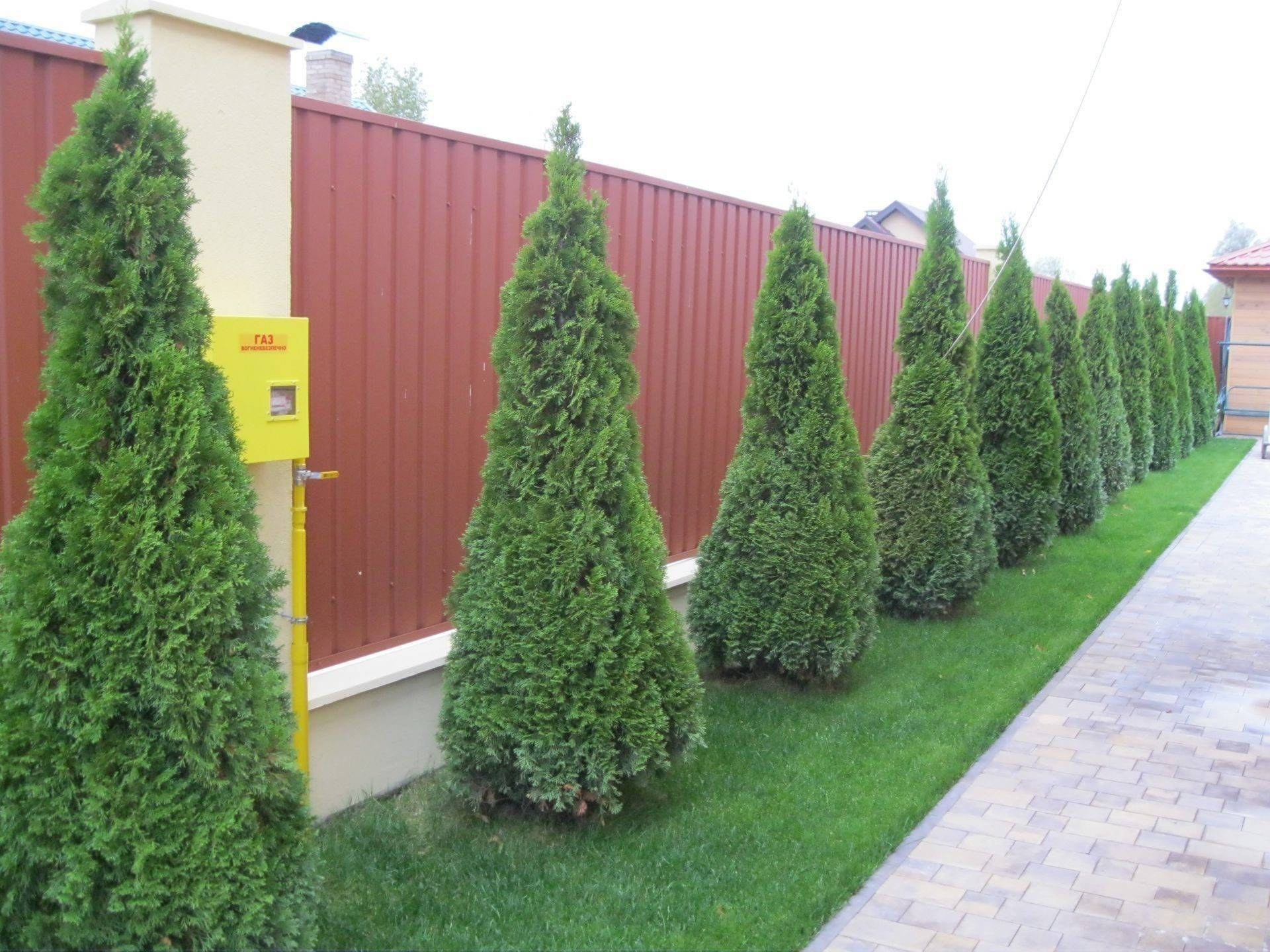 Туя Смарагд вдоль забора