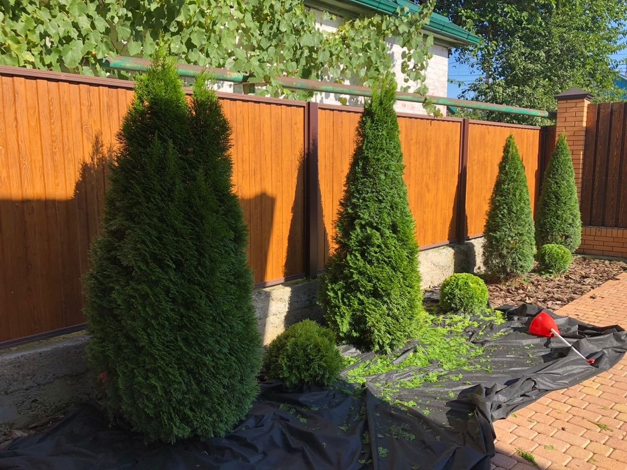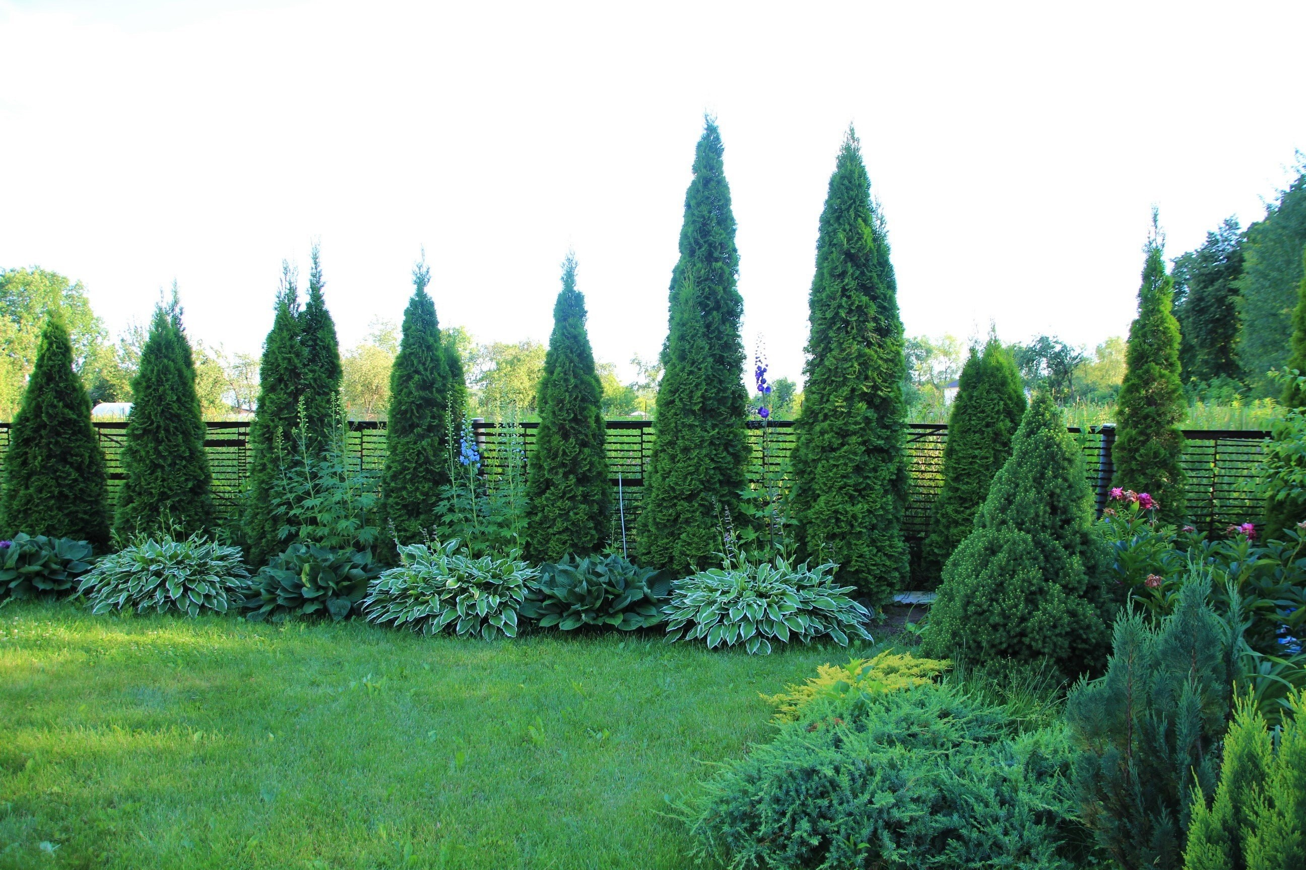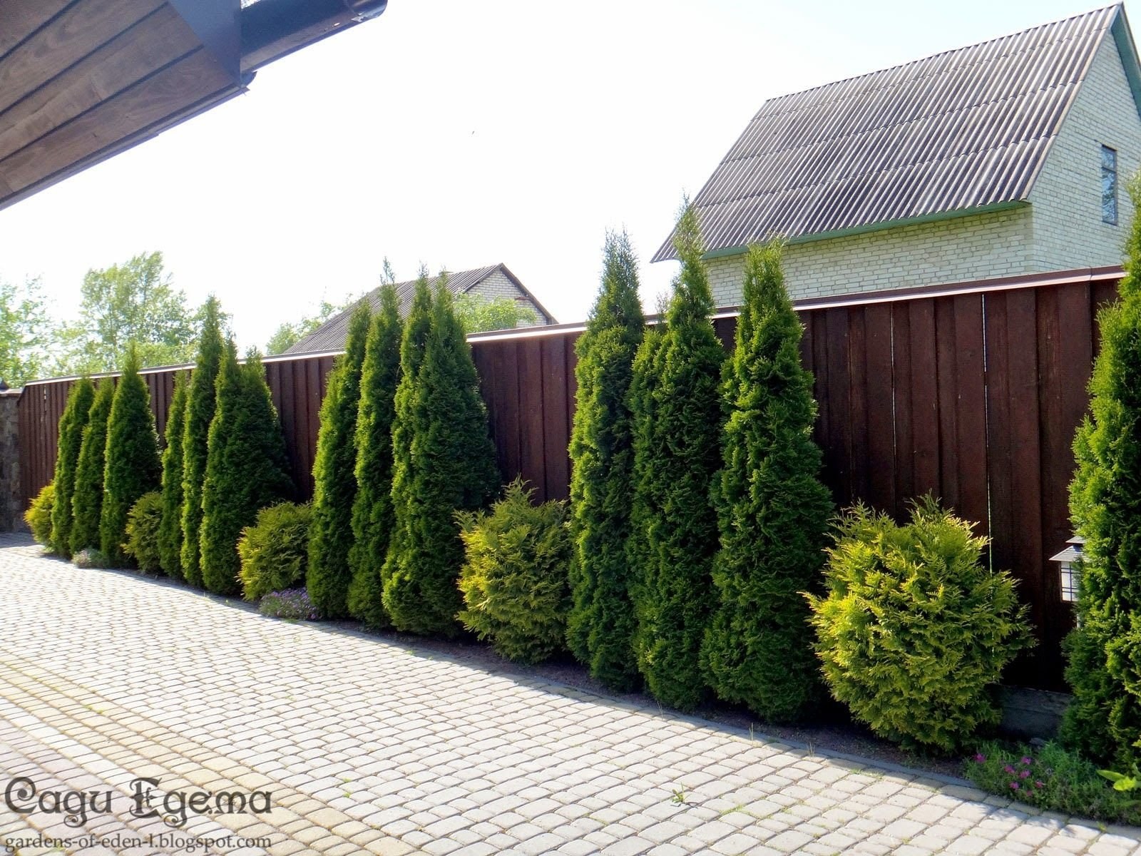 Туя Смарагд вдоль забора