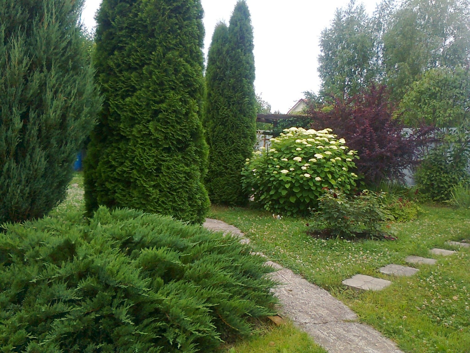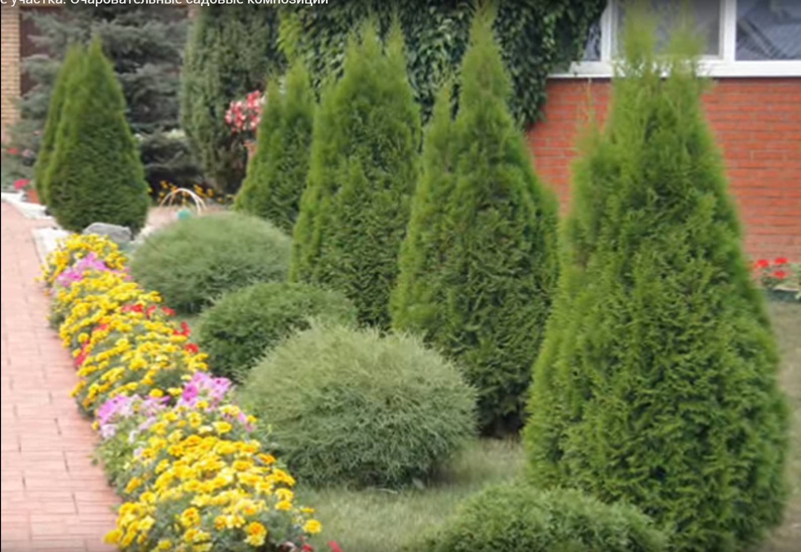 Лапчатка и туя Даника сочетание