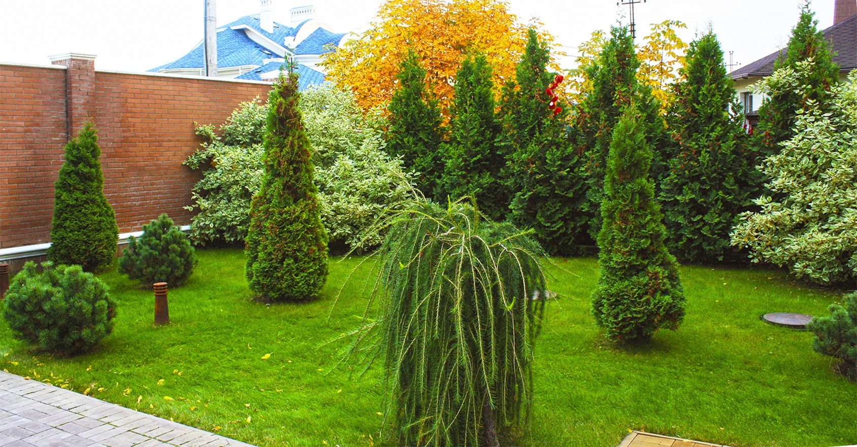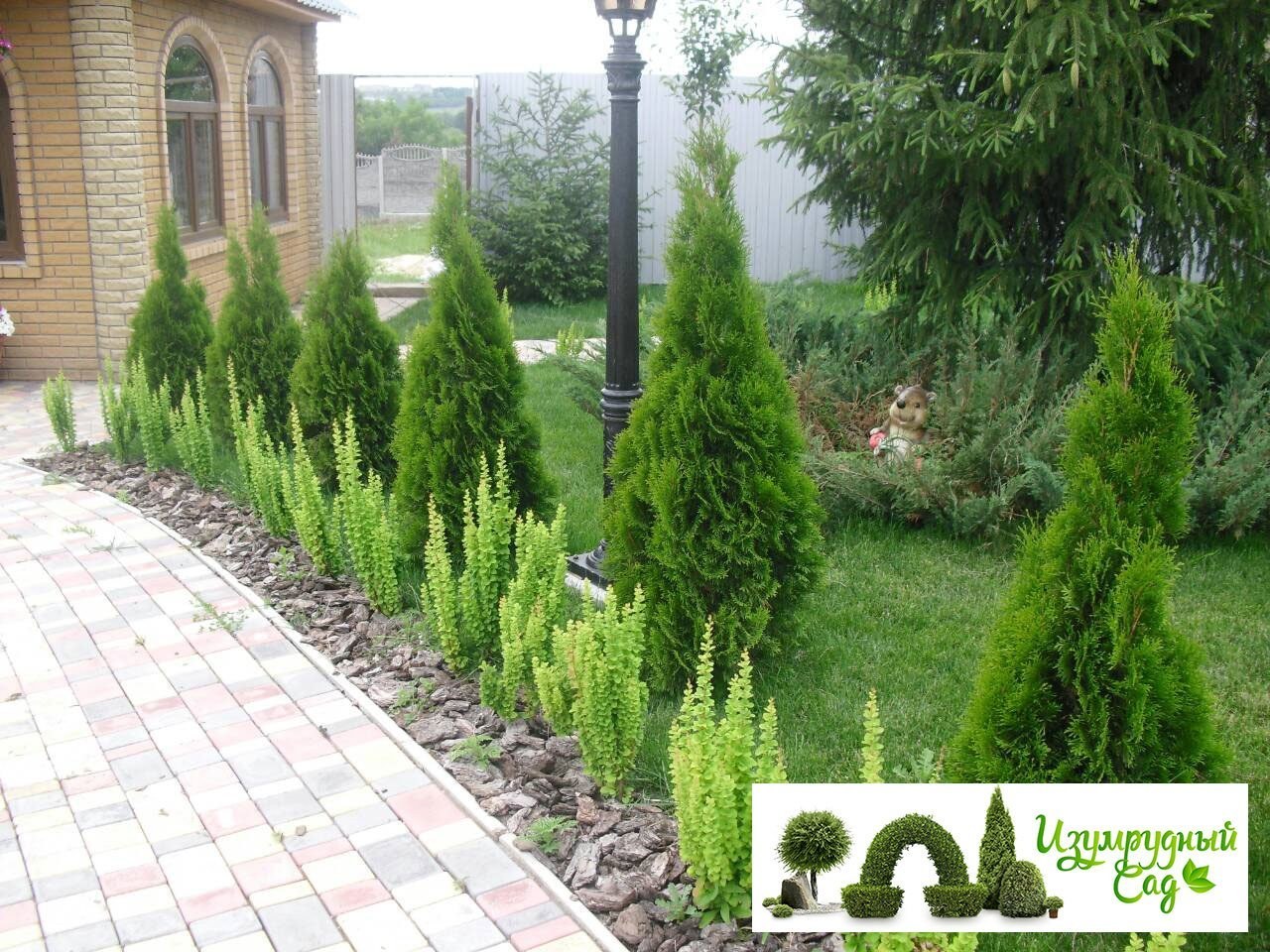 Туя Смарагд и Даника в ландшафте