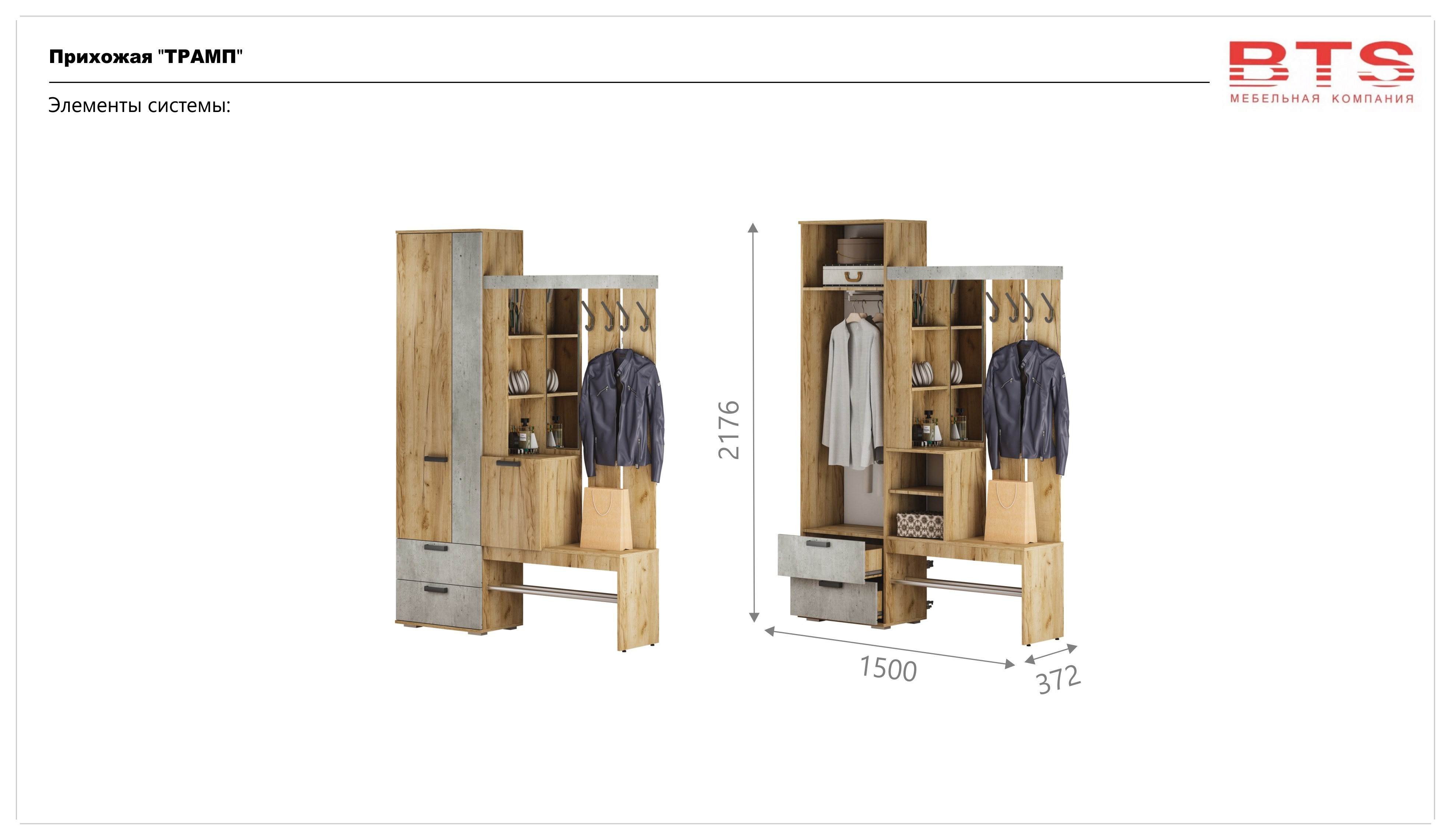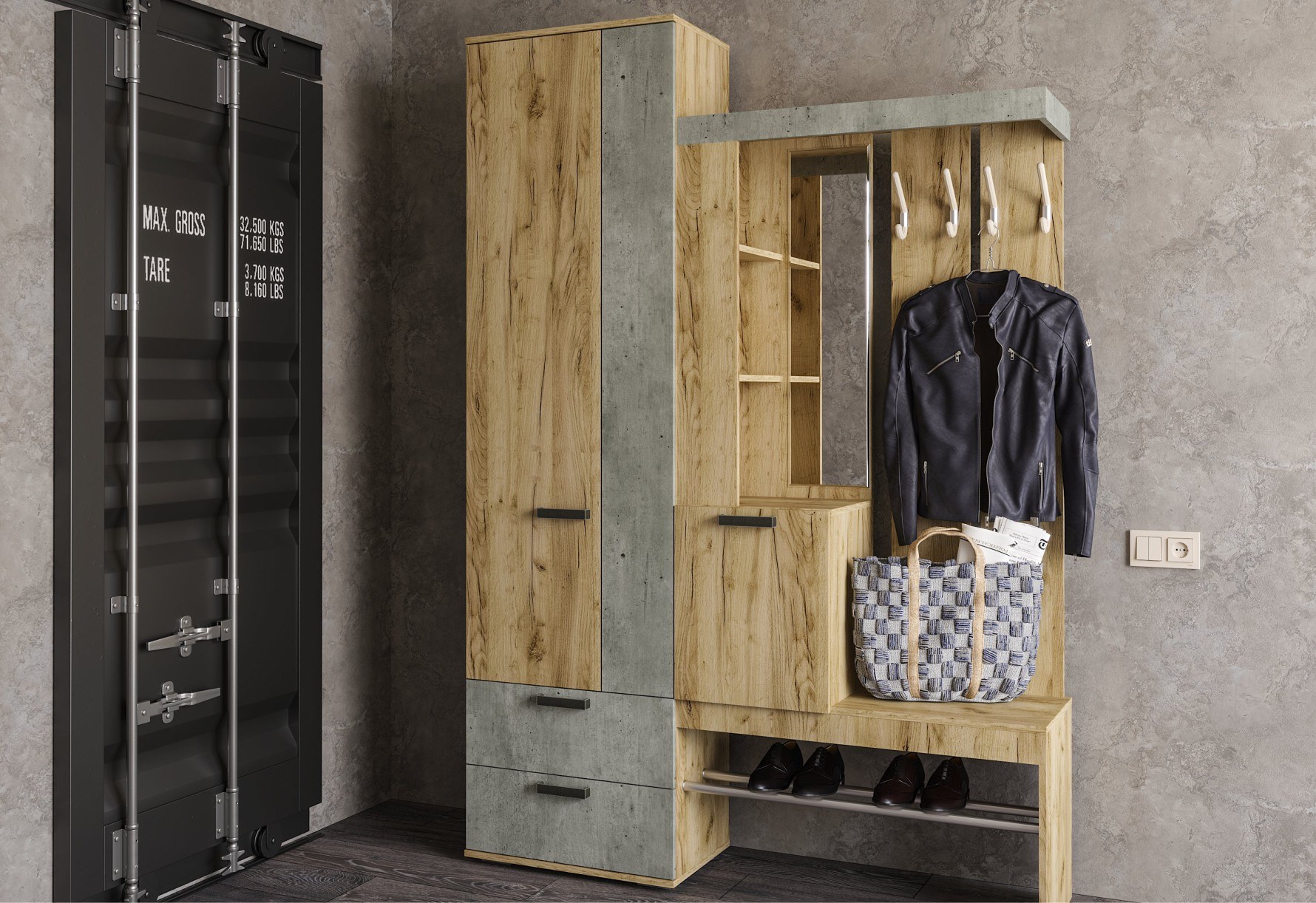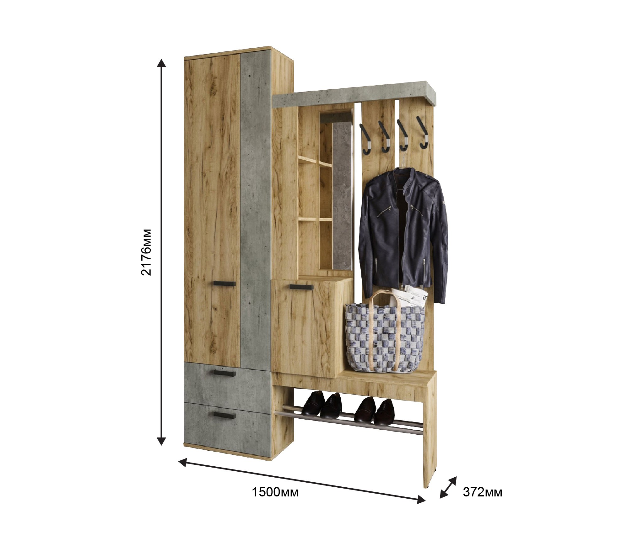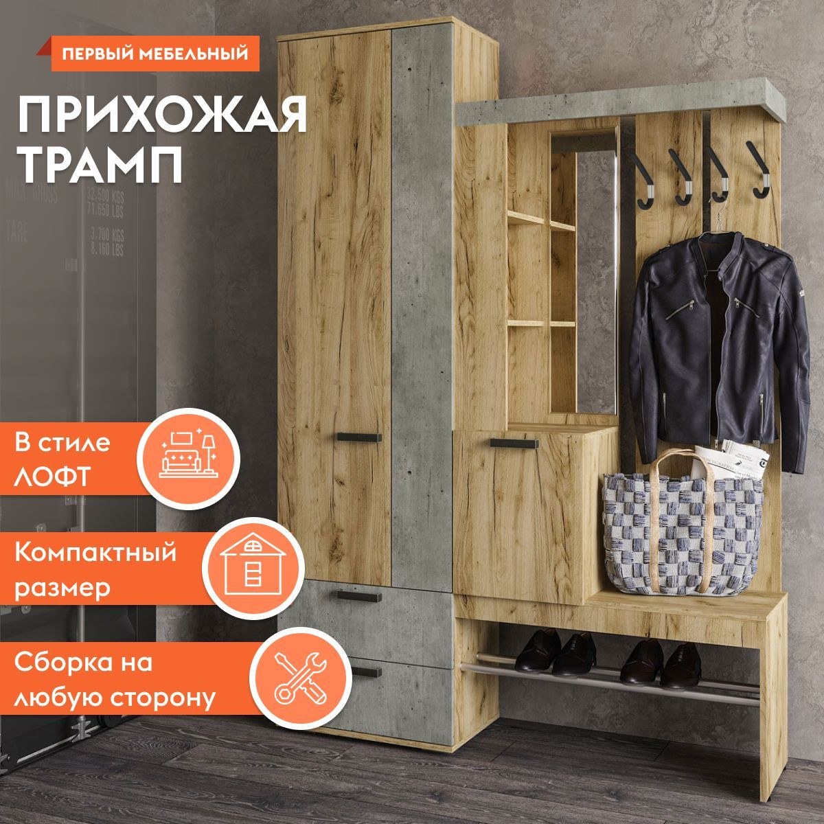Прихожая "Трамп" (1500*2176*372), крафт/бетон