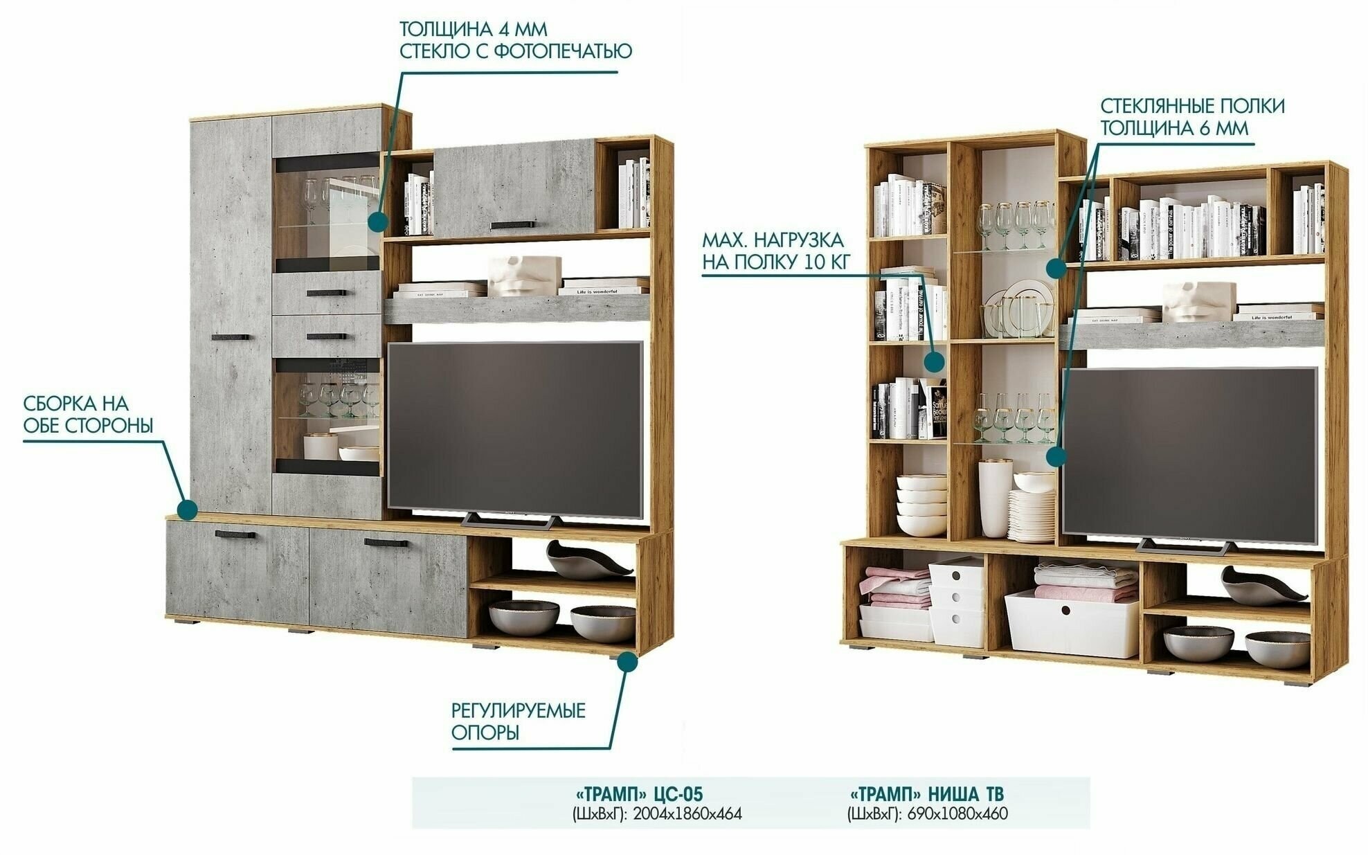Гостиная Трамп ЦС-05 Центральная секция крафт/Метрополитан грей БТС