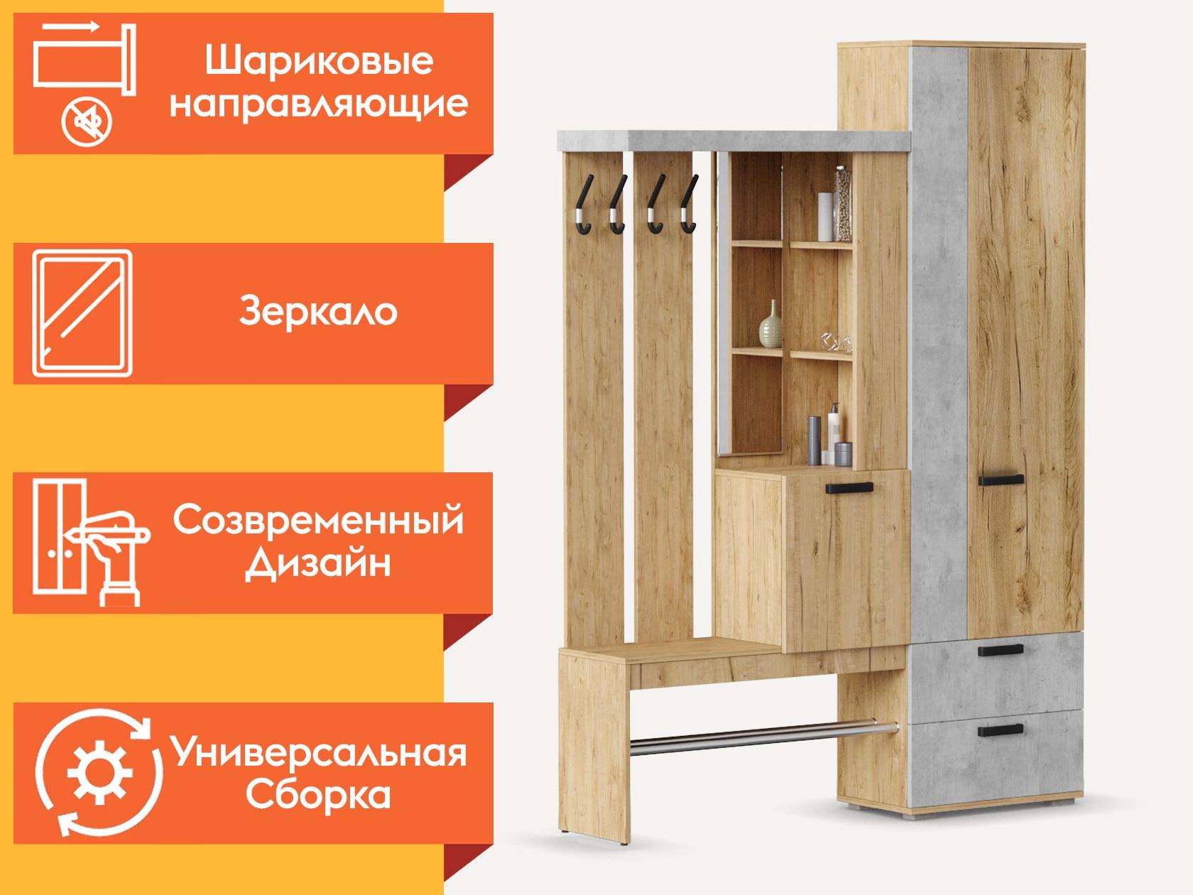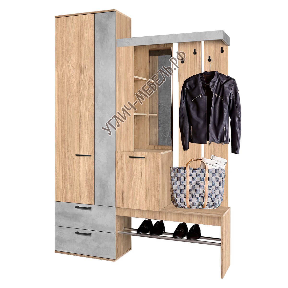Прихожая Кензо вешалка крафт/Метрополитан грей