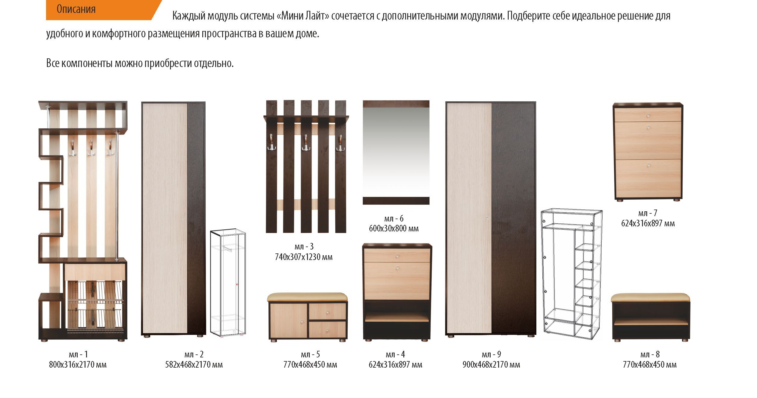 Прихожая мини-Лайт (мл-1) венге/ясень