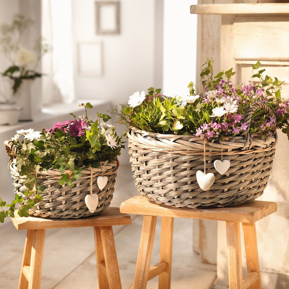Композиции в плетеных кашпо