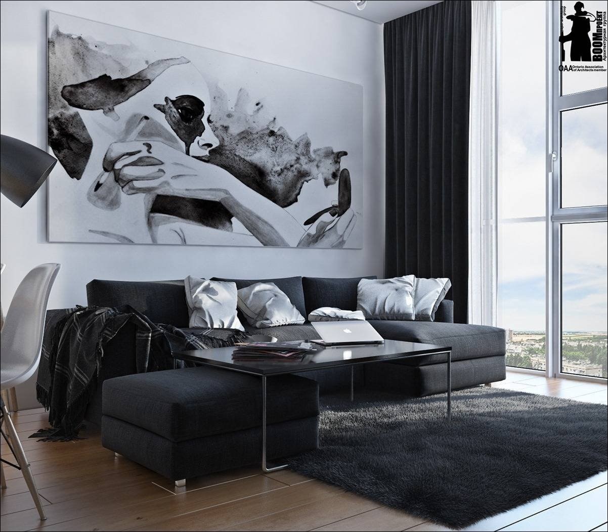 Гостиная в черно белом стиле