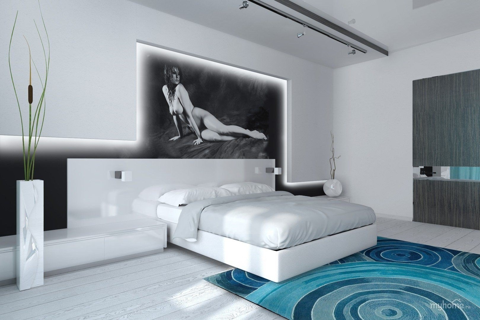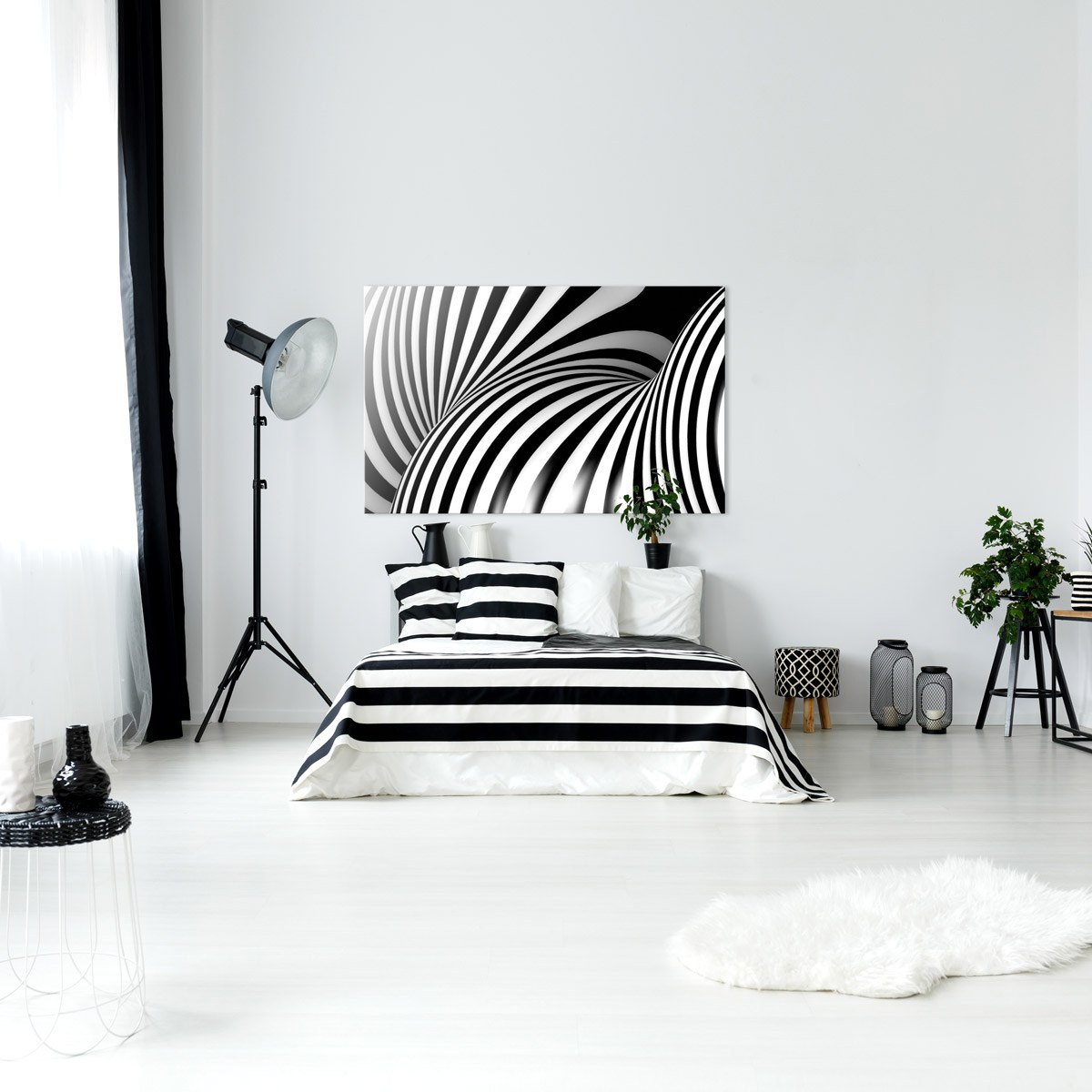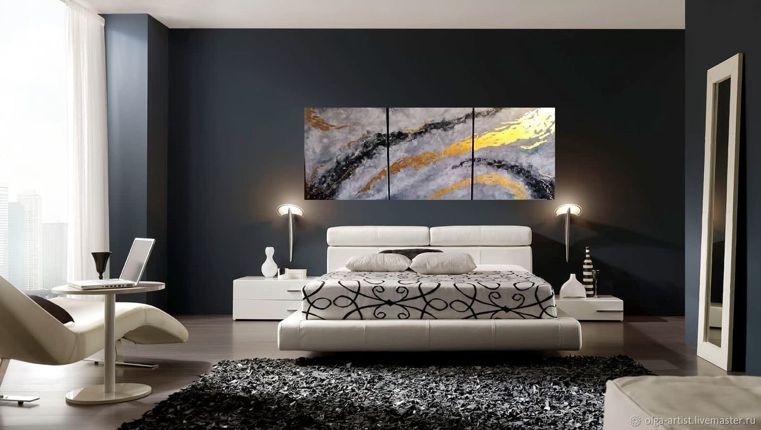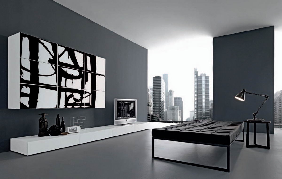 Черно белая спальня