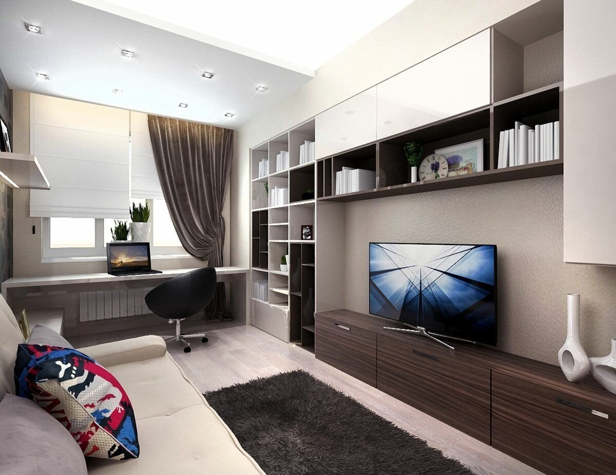 Гостиная 17 м2 интерьер прямоугольный