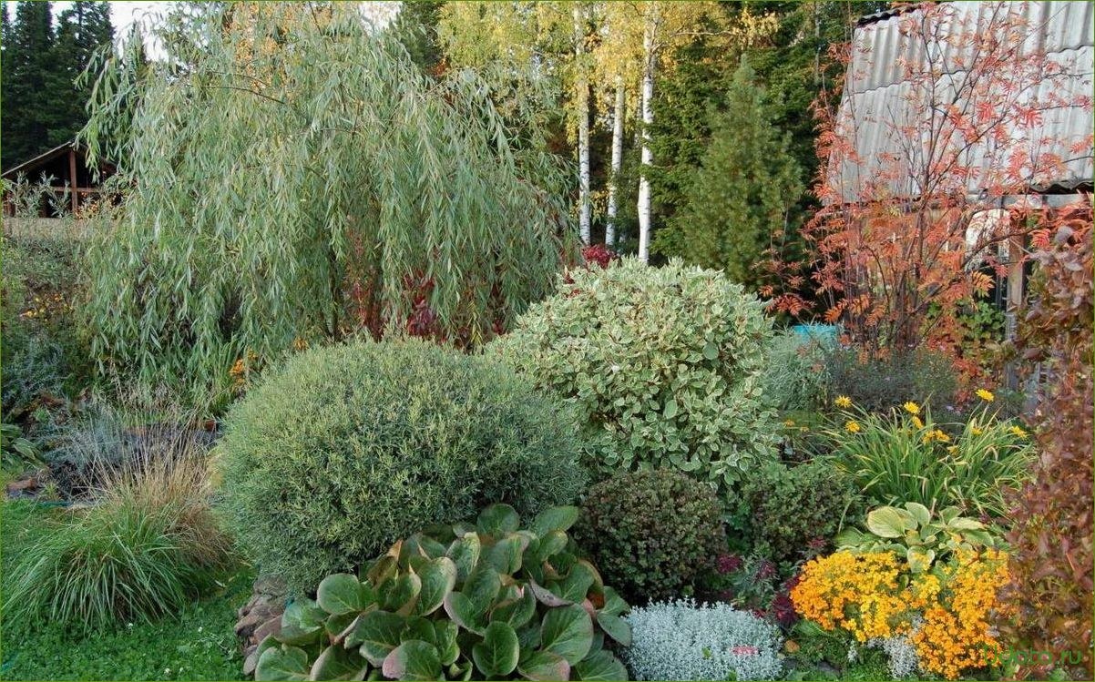 Миксбордер с туей, гортензией, барбарисом