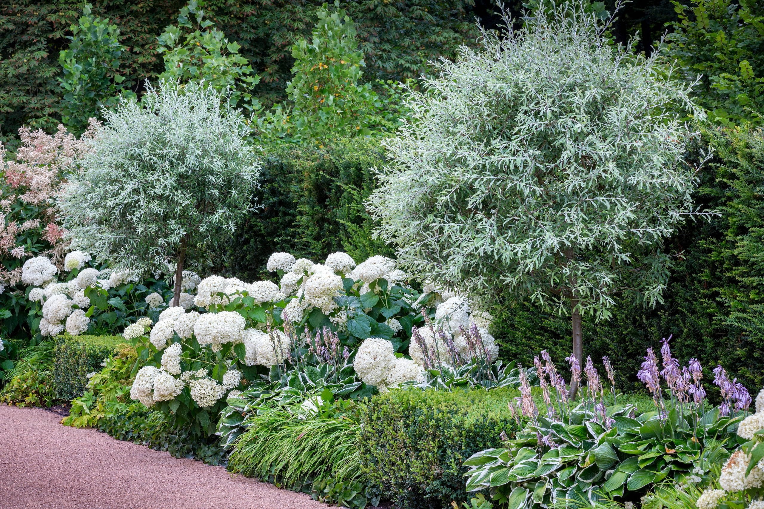 Миксбордер с гортензией розой пионом