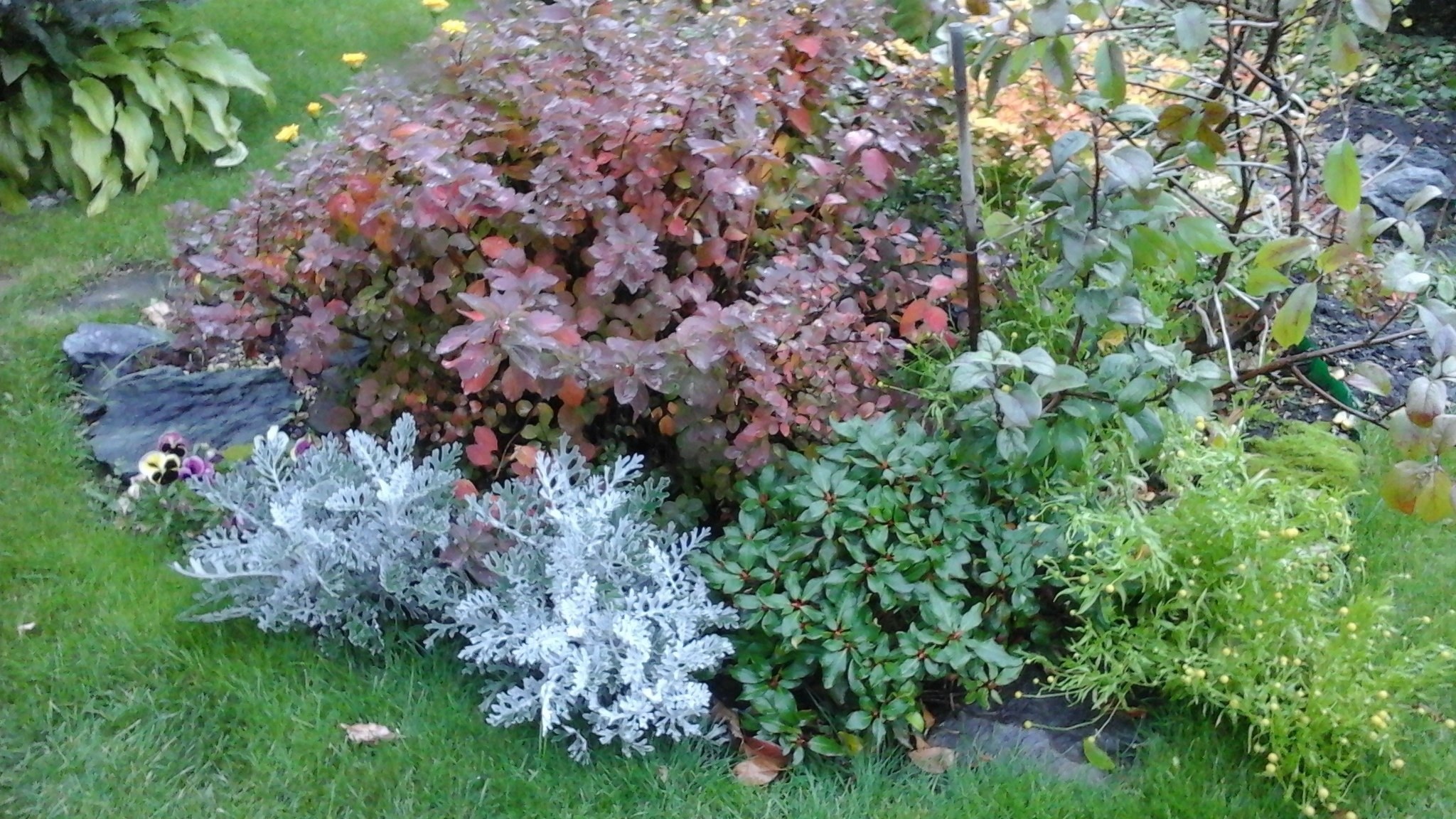 Клумба с дёреном и спиреей