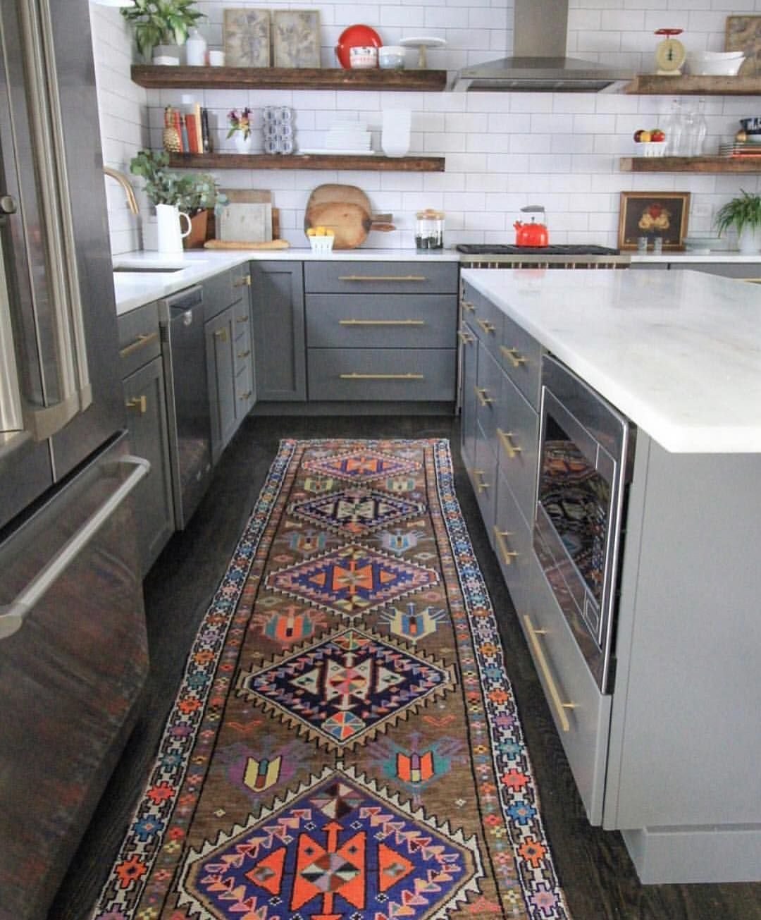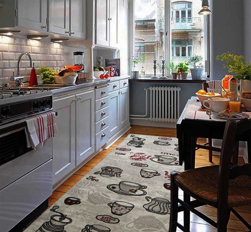 Ковер на кухню на пол в интерьере (57 фото)
