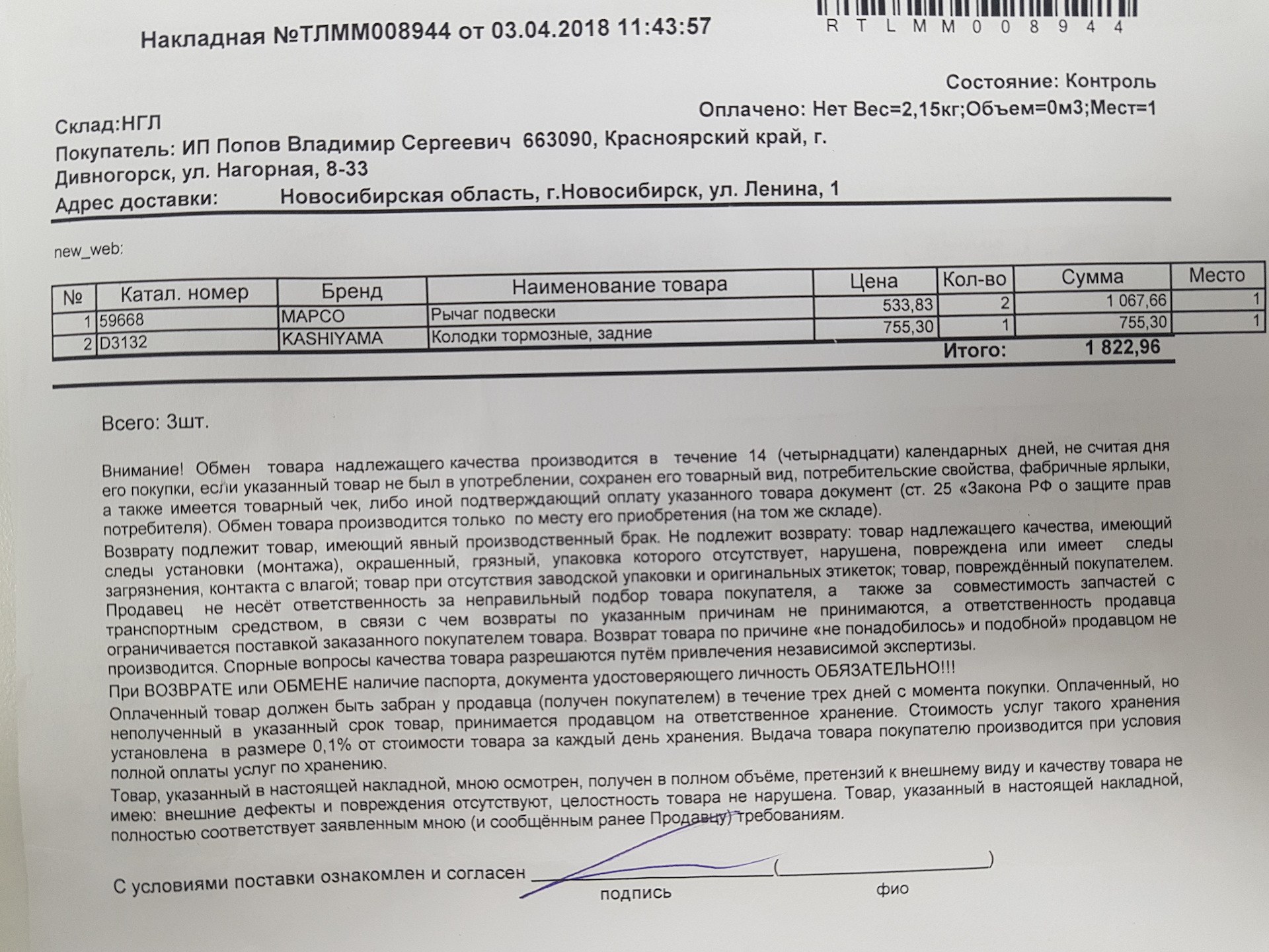 Возврат товара