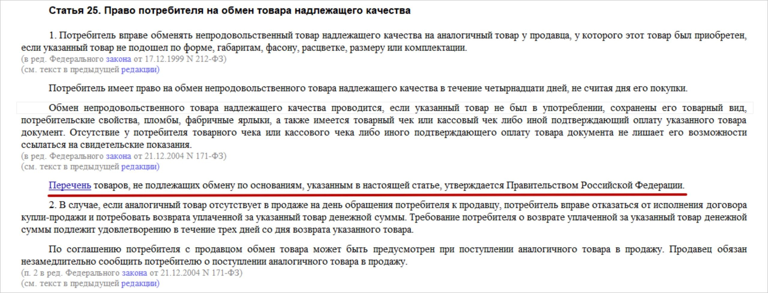 Возврат товара надлежащего качества в магазин в течении 14 дней