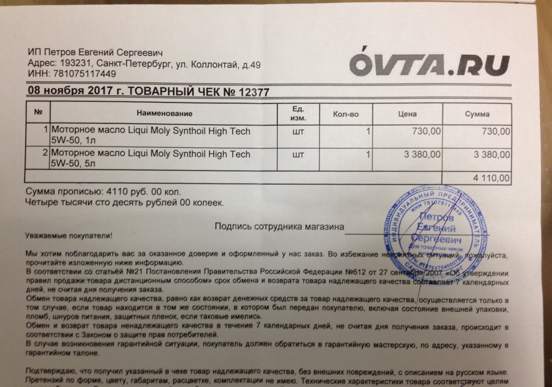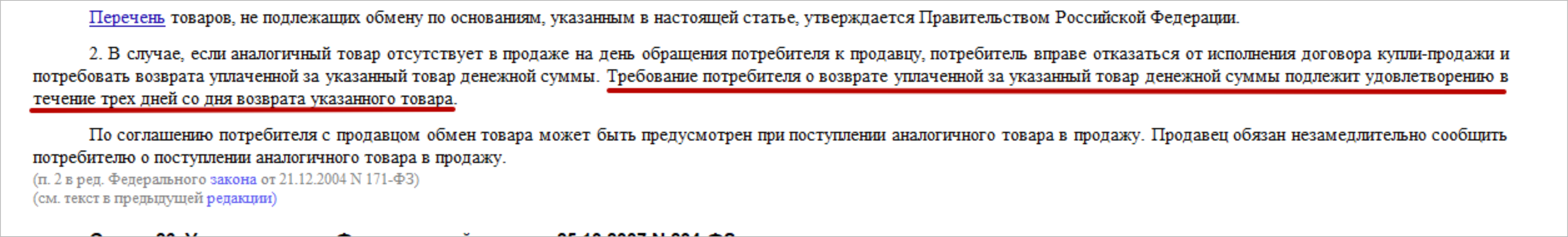 Возврат товара в 7 дневный срок