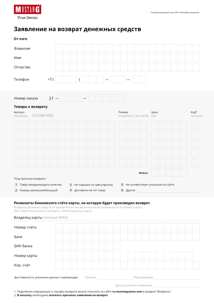 Заявление на возврат товара пример заполнения
