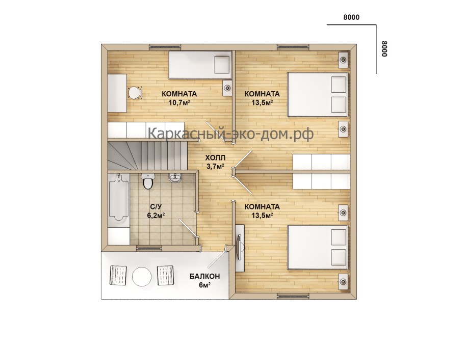 Проект дома из бруса 6х6 с мансардой