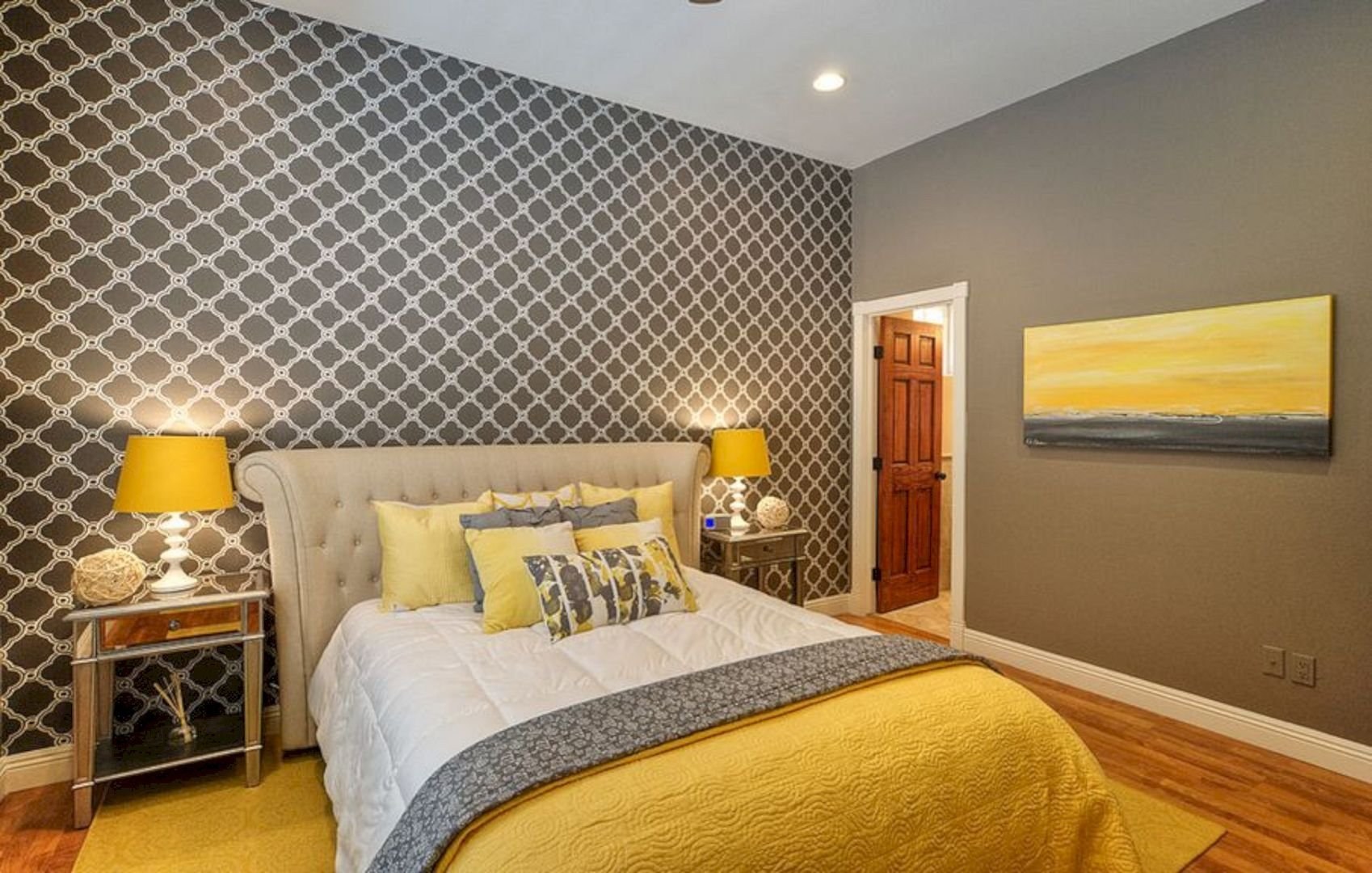 Спальня с комбинированными обоями