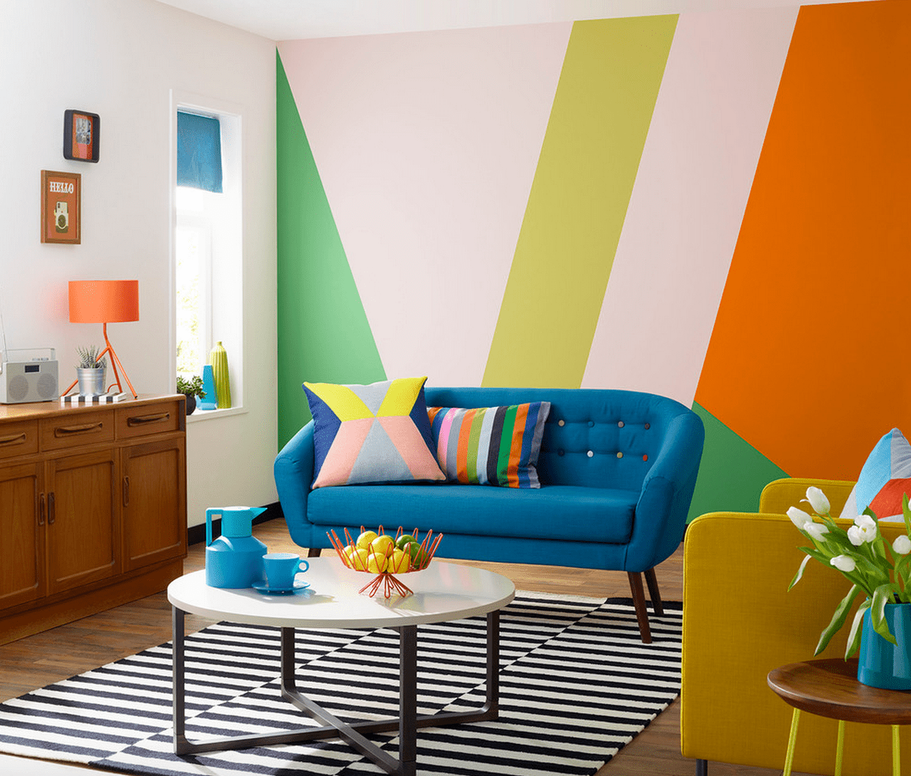 Геометрические полосы на стенах в интерьере