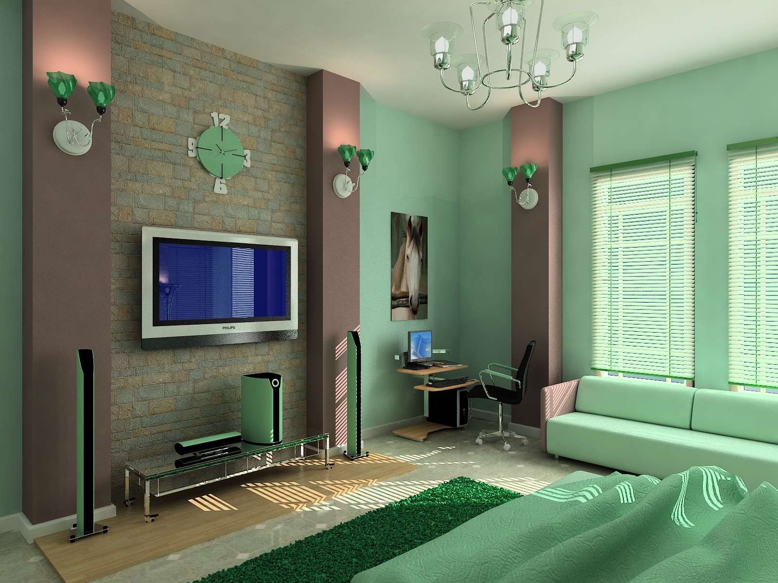 Комната в зеленых тонах интерьер