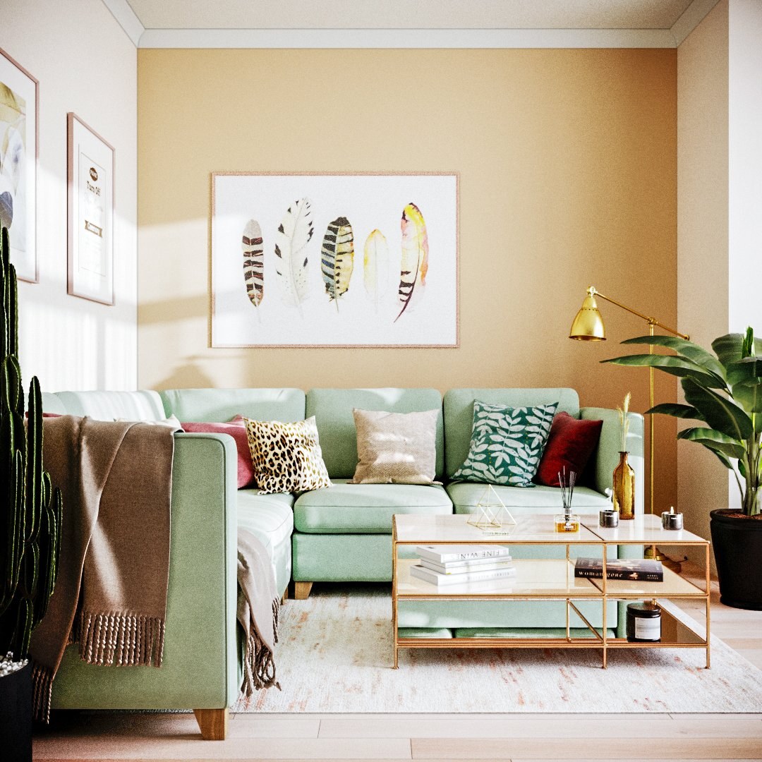 Фисташковый цвет в интерьере гостиной