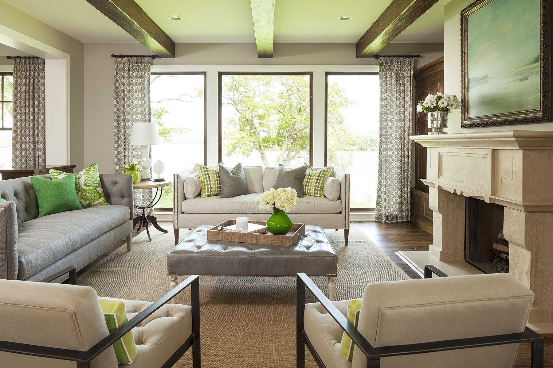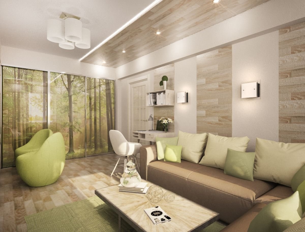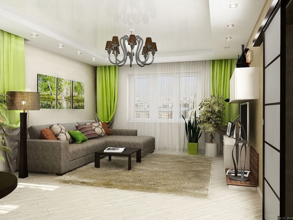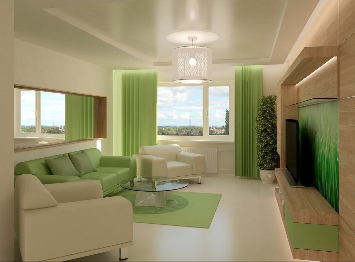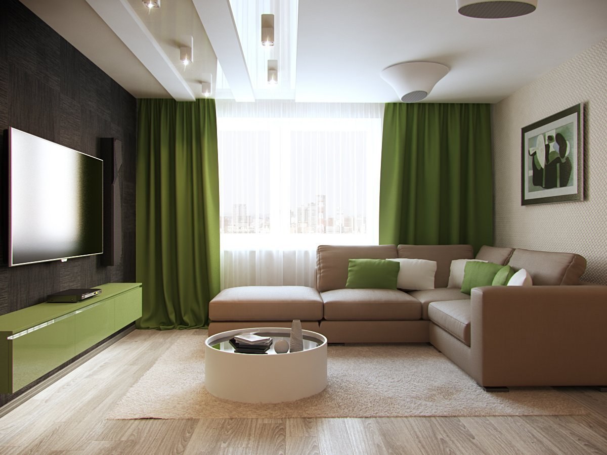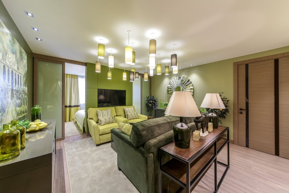 Зеленые оттенки в интерьере гостиной