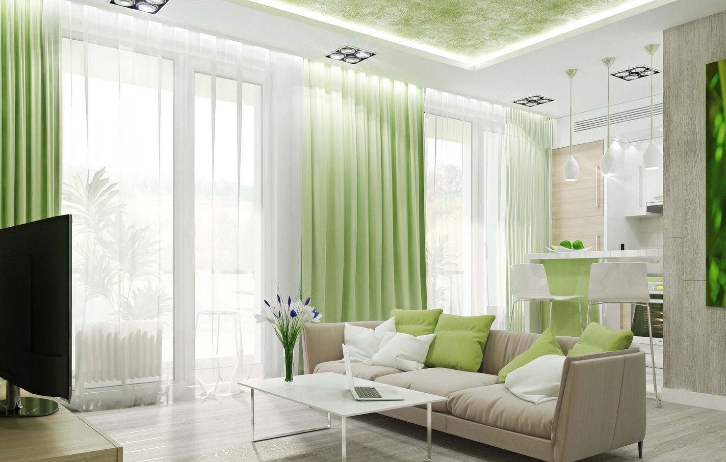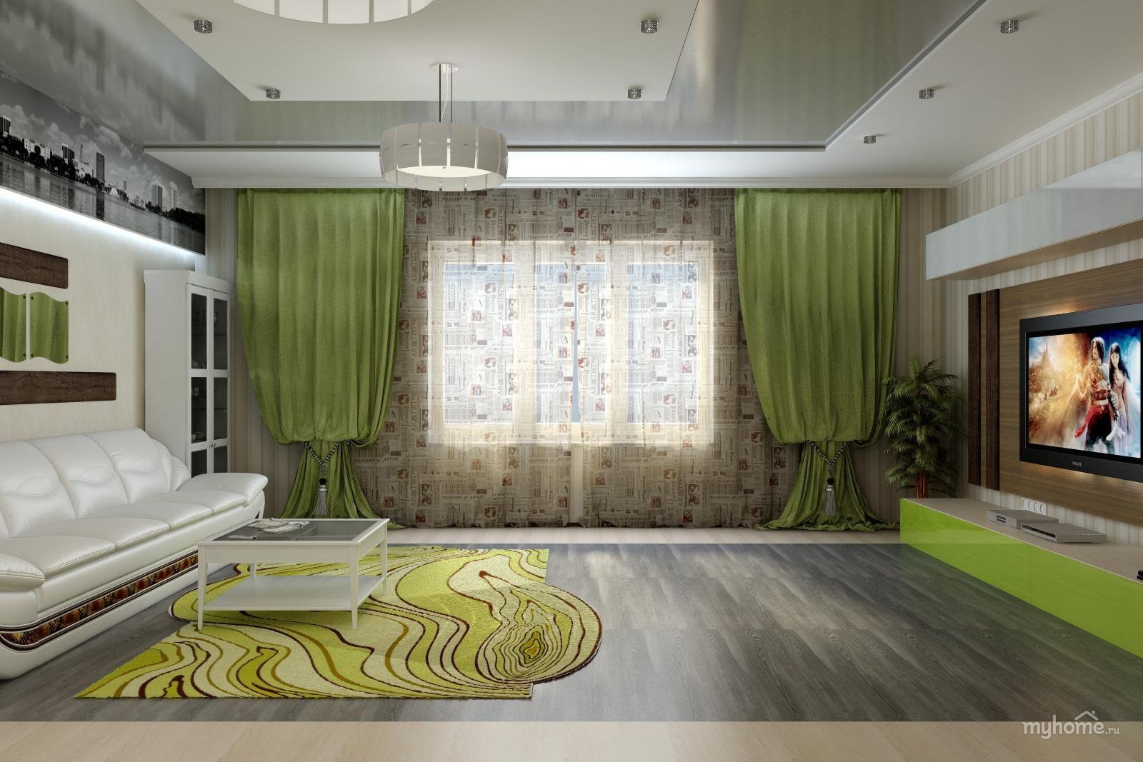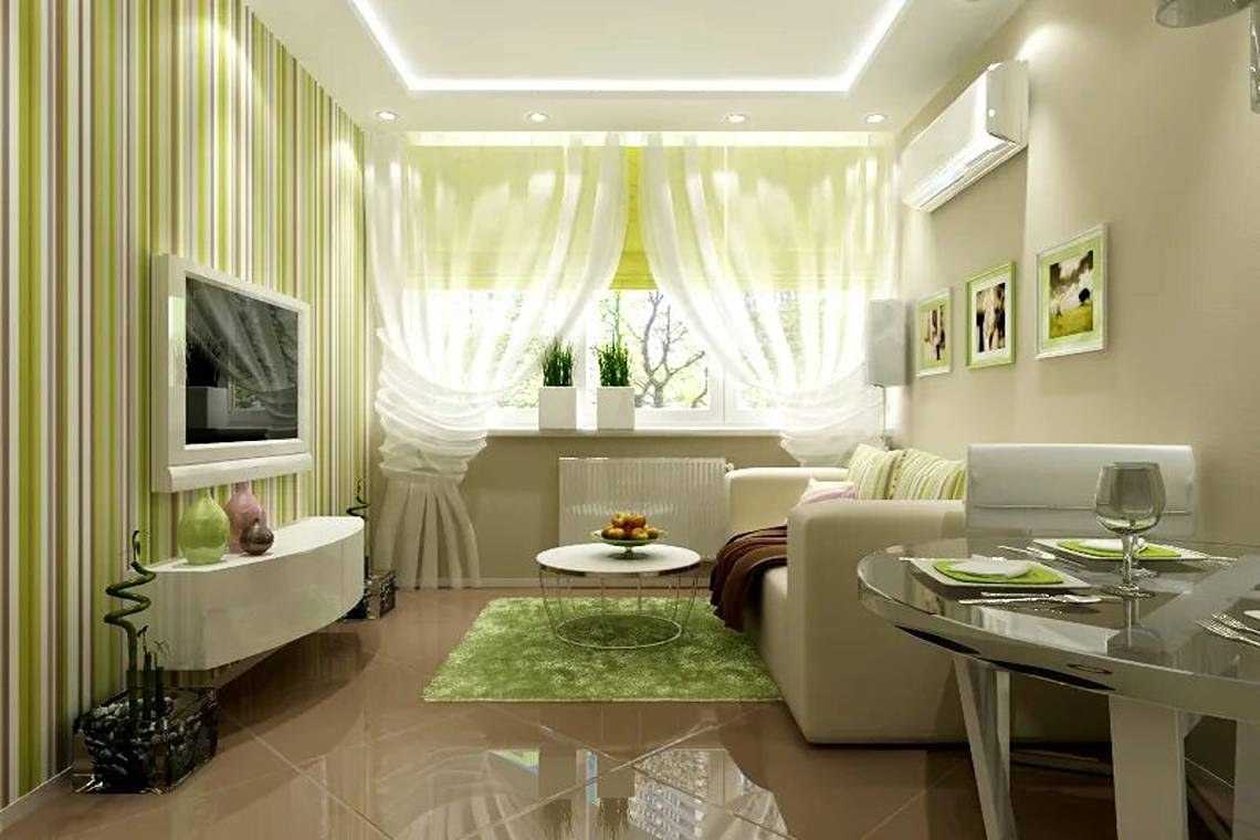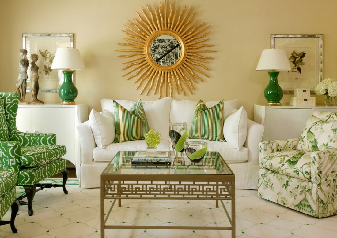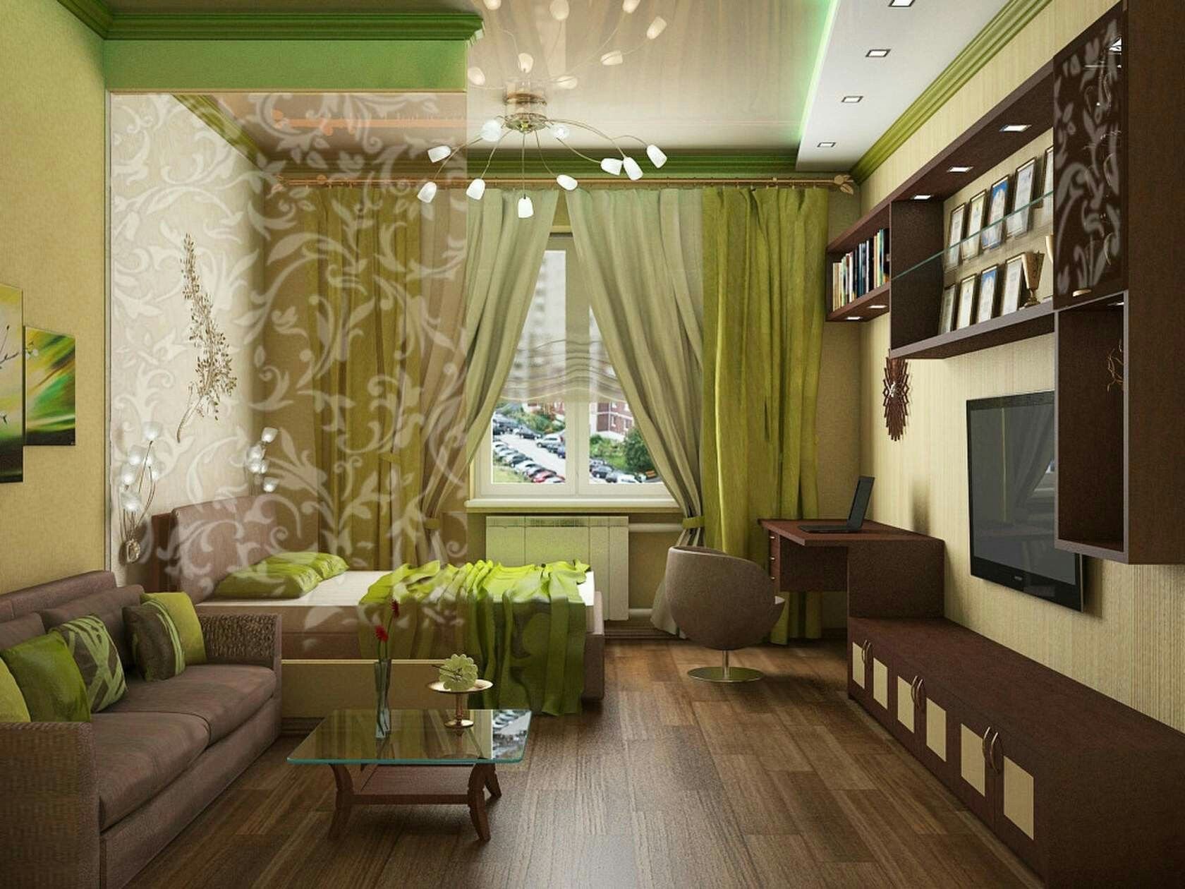 Зеленые оттенки в интерьере гостиной