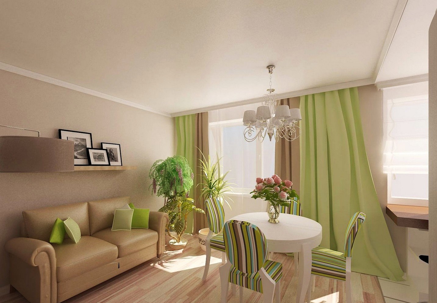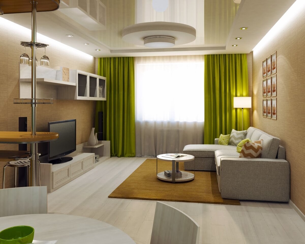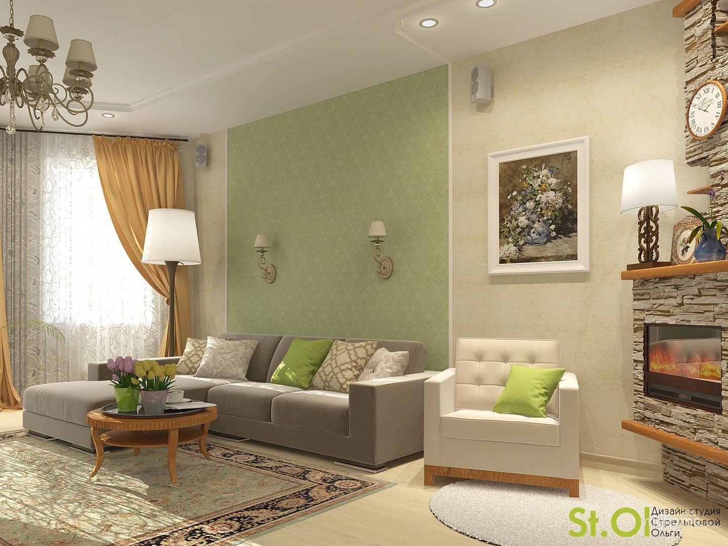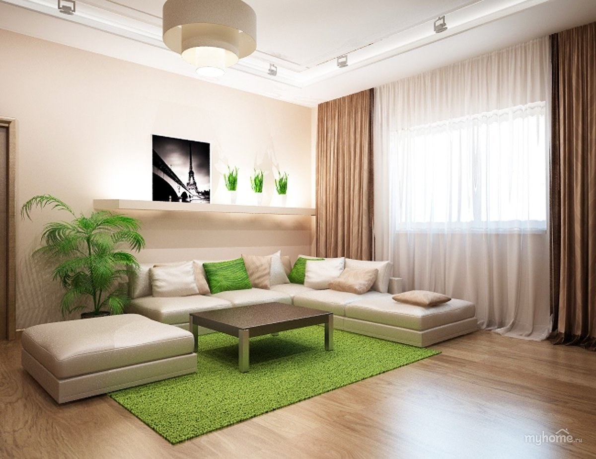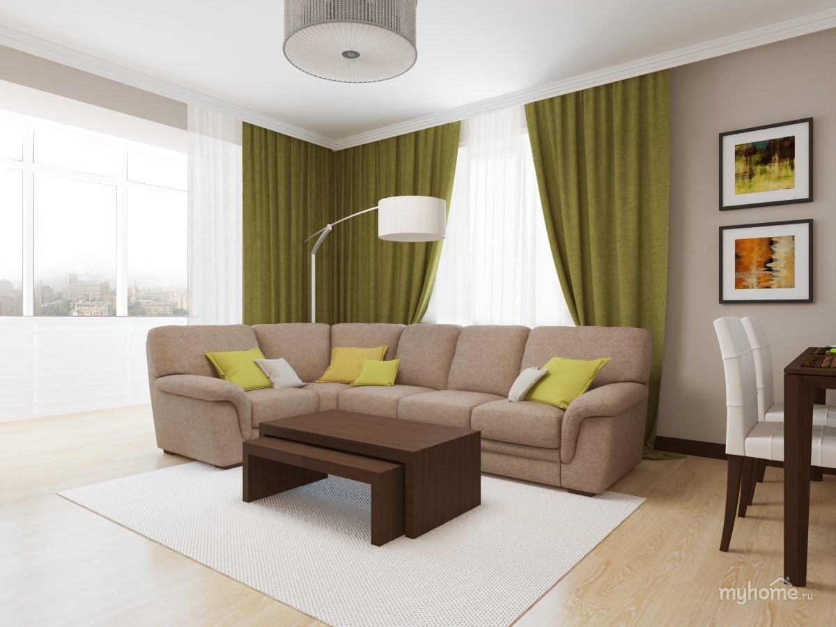 Гостиная в бежево зеленых тонах