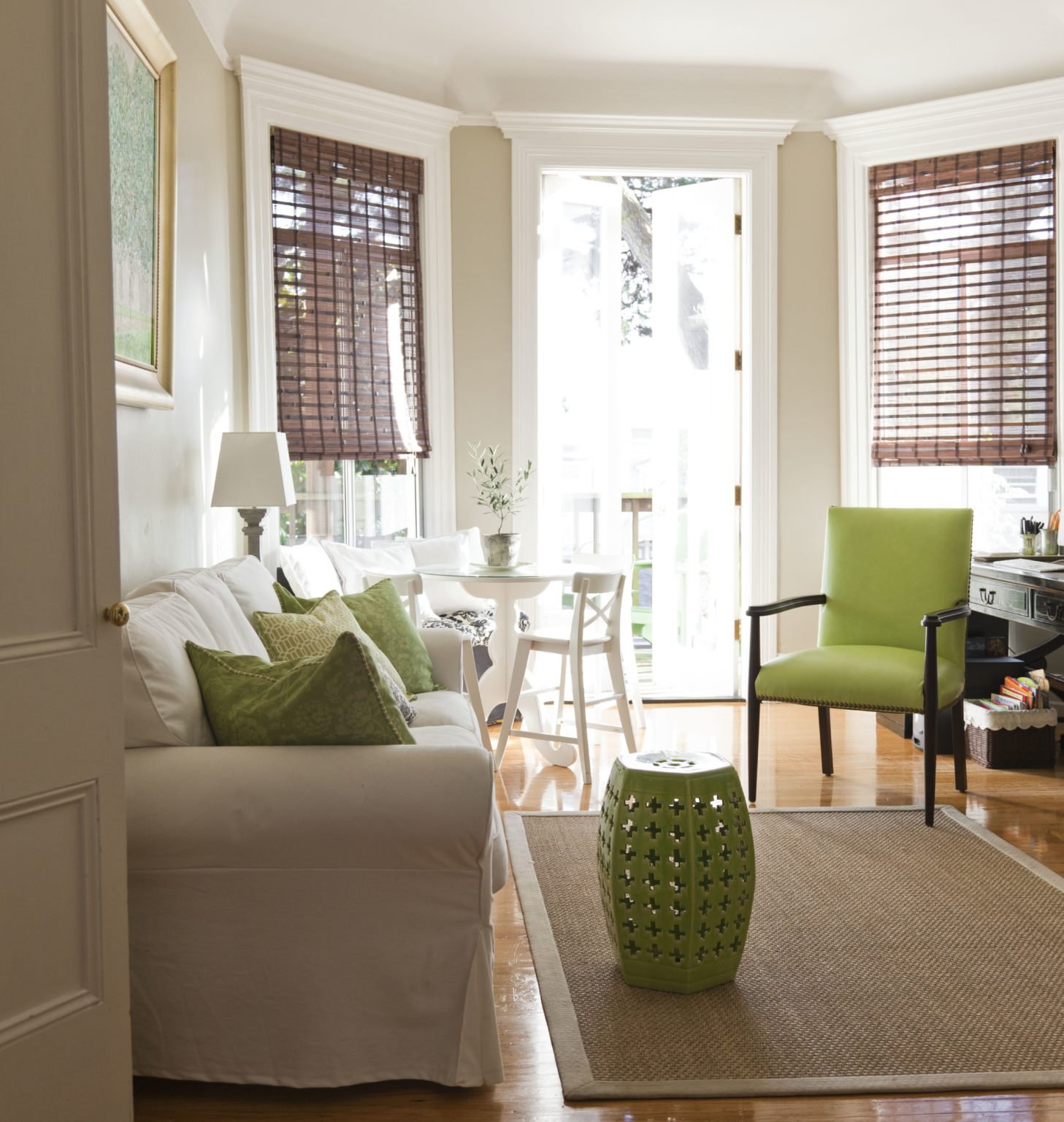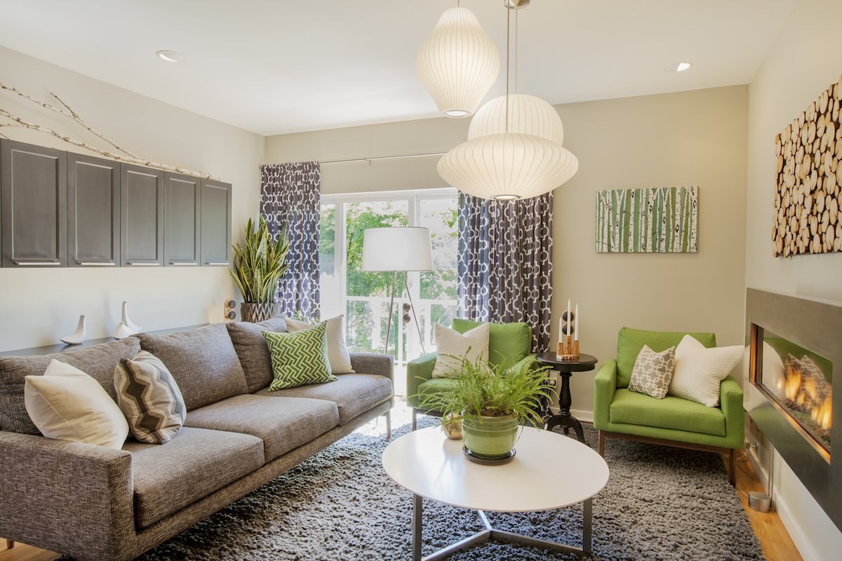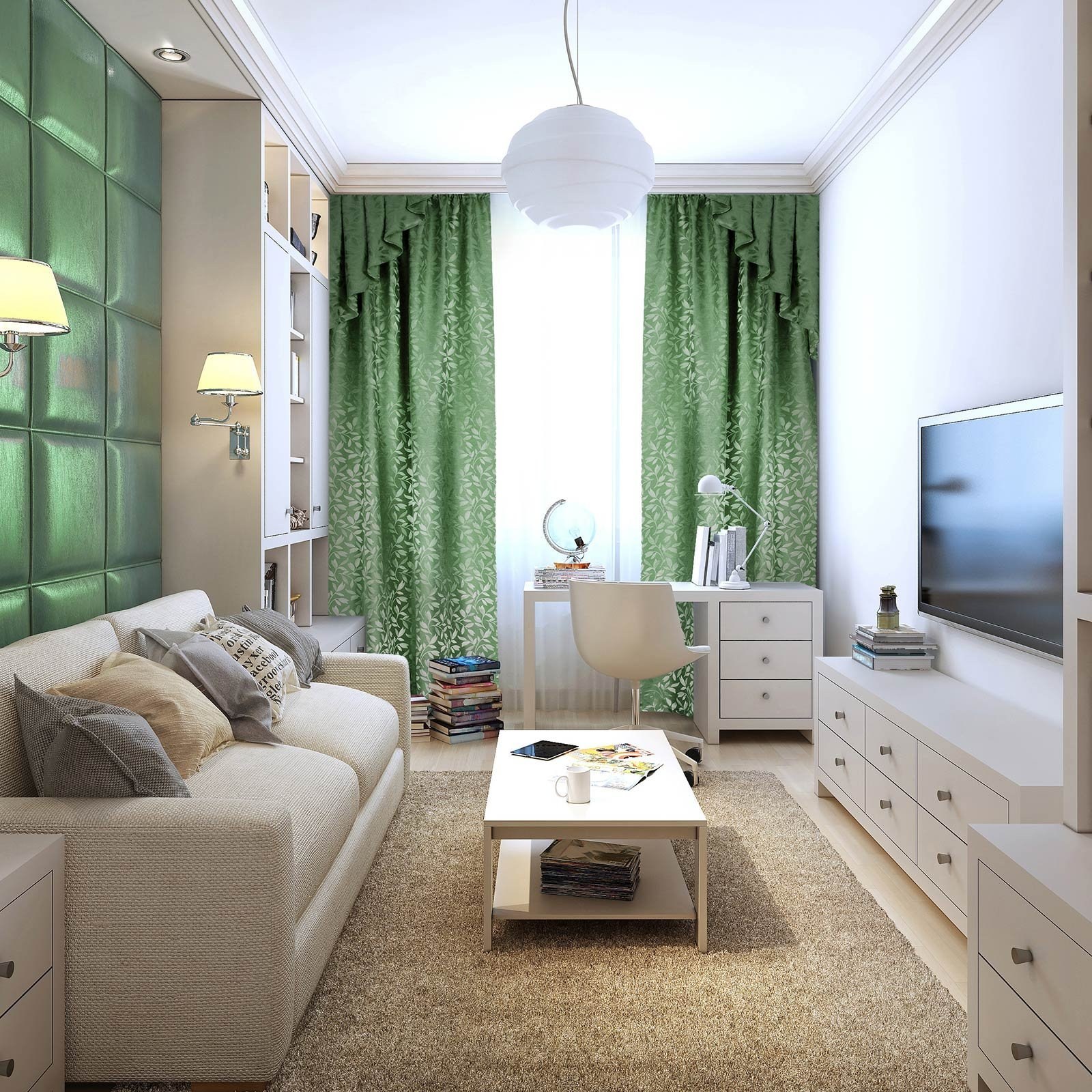 Гостиная с зелеными акцентами