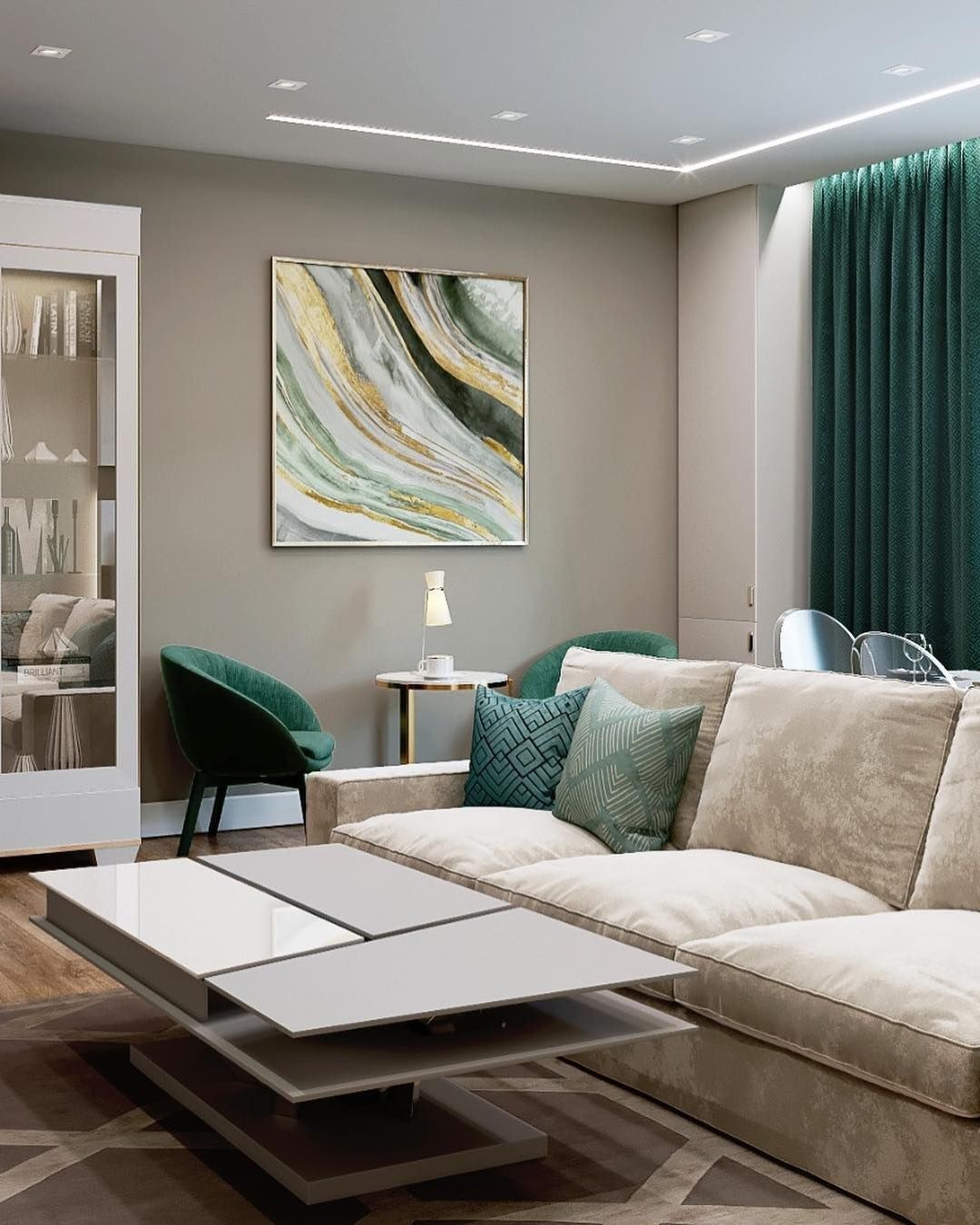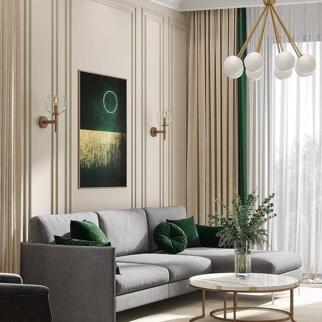 Гостиная в бежево изумрудных тонах