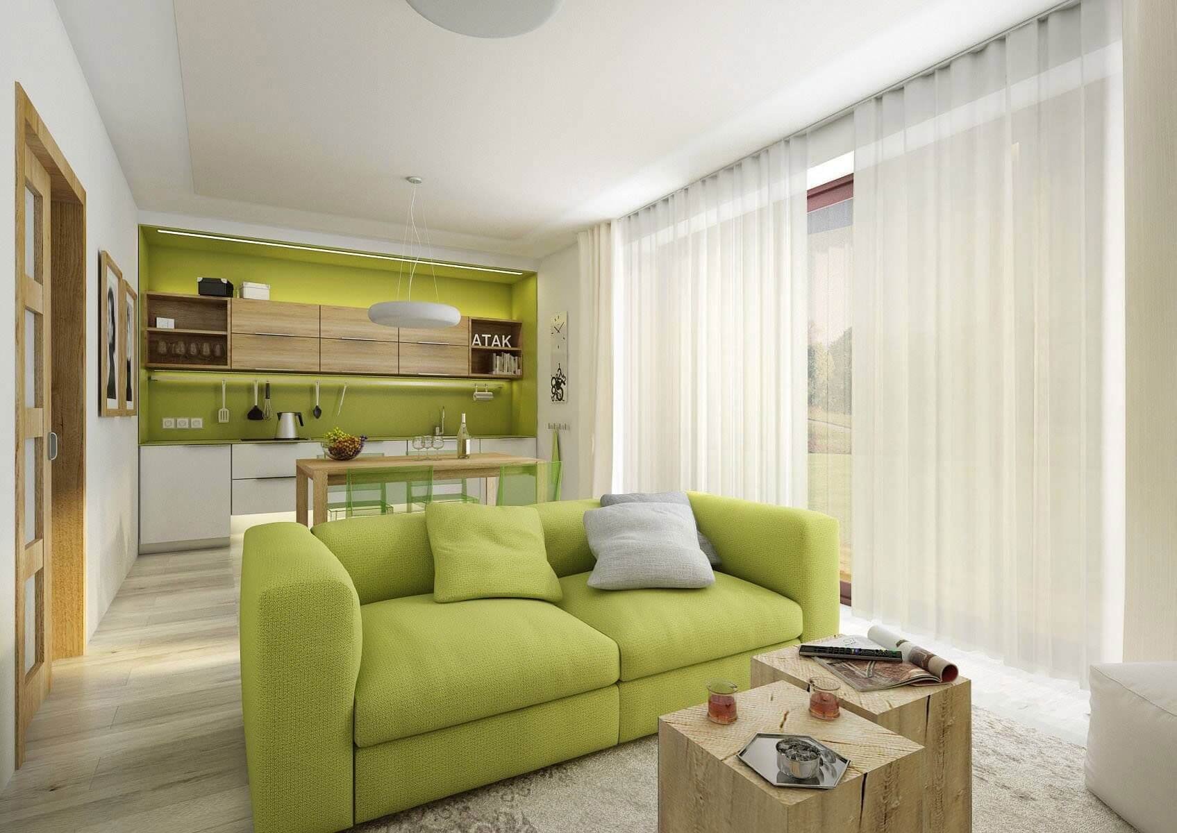 Салатовый диван в интерьере