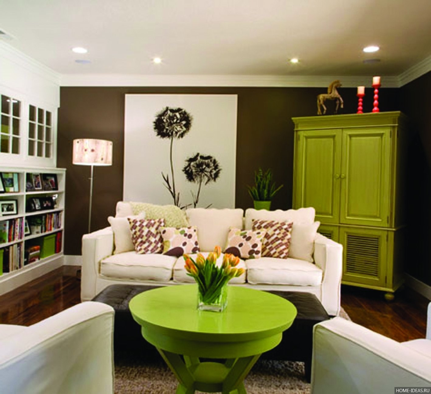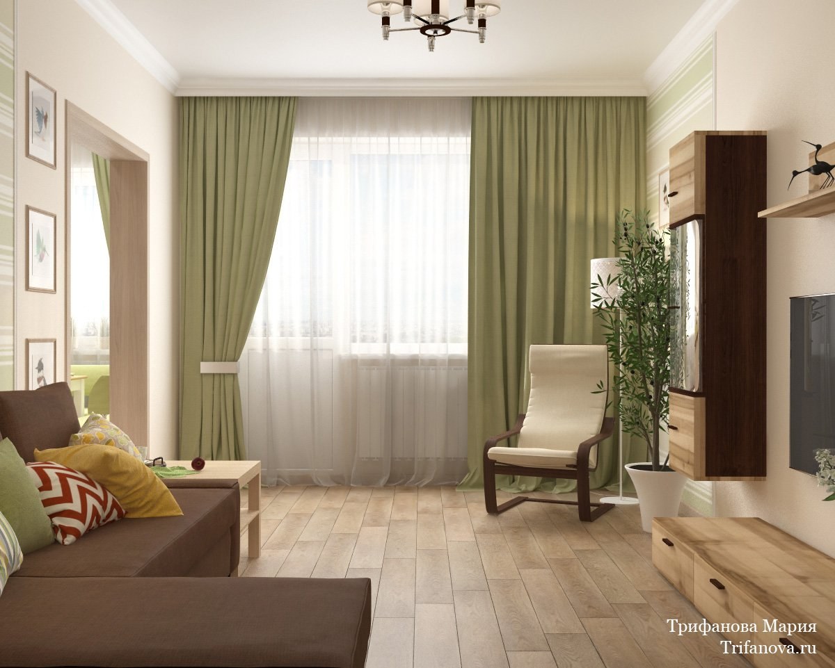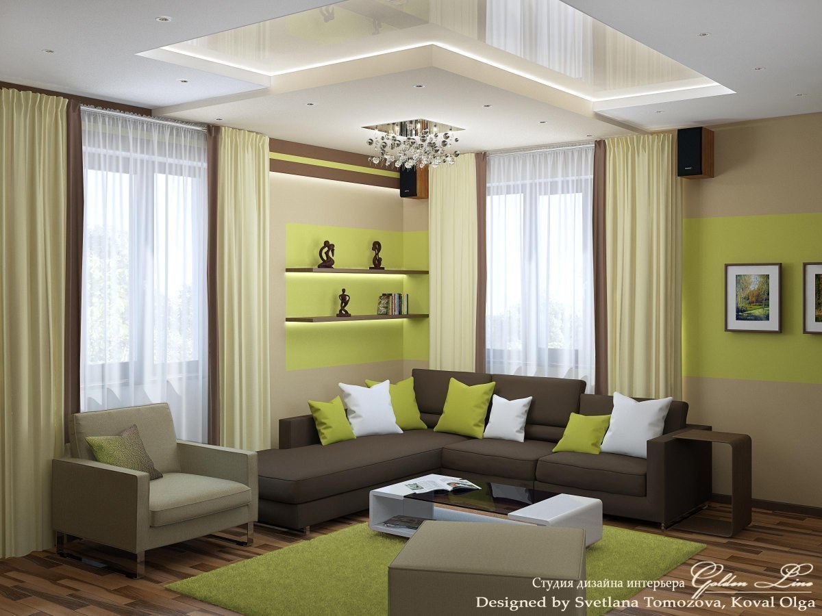 Гостиная в коричнево зеленых тонах