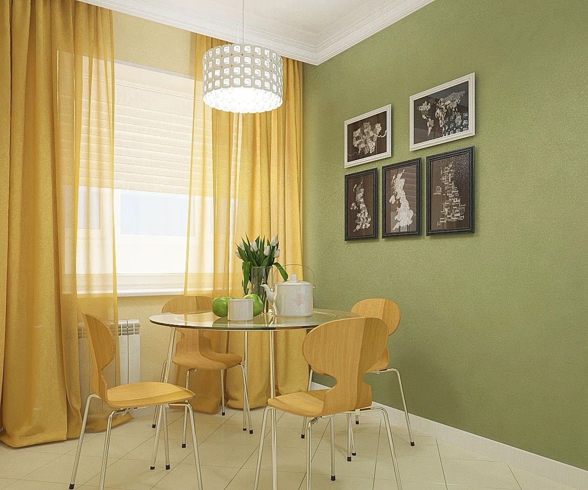 Зелёные шторы в интерьере