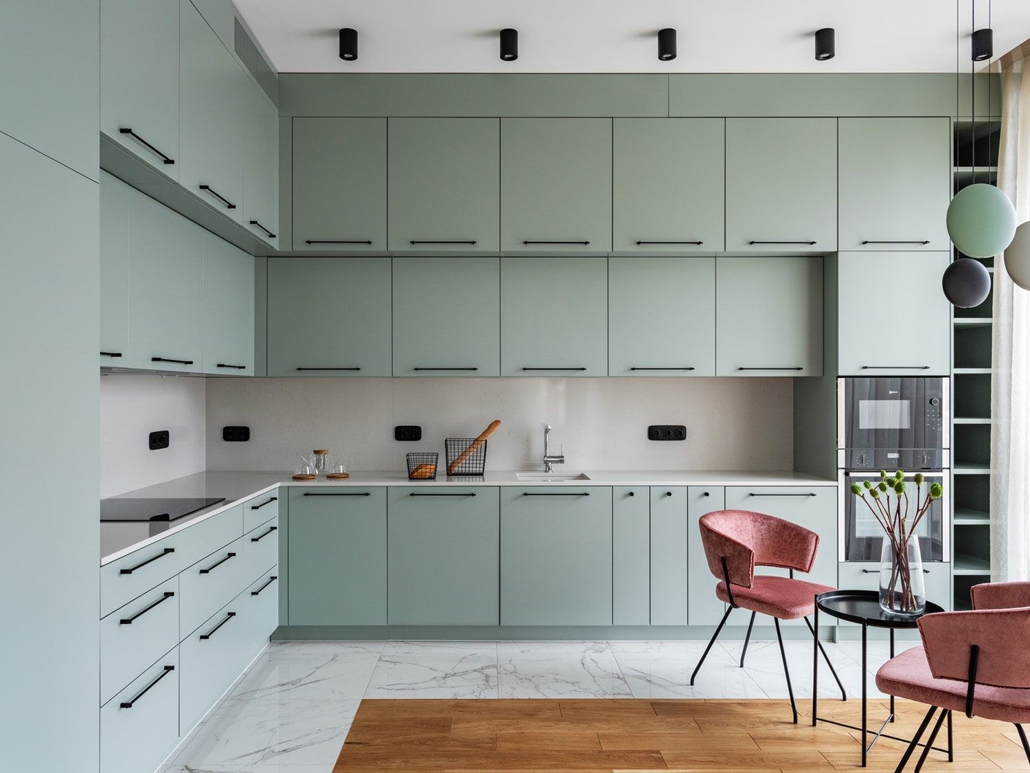 Кухня икеа зеленая матовая