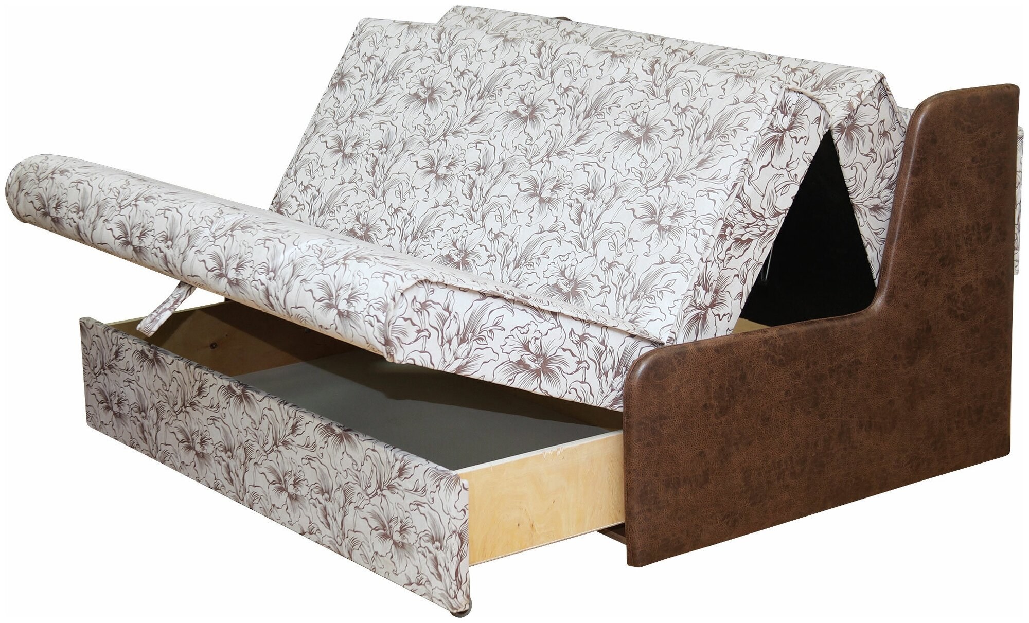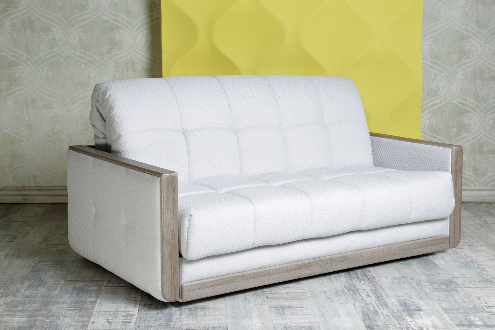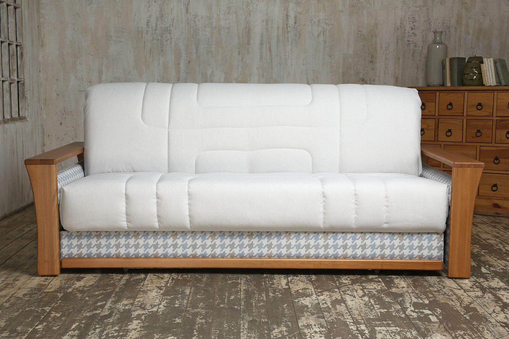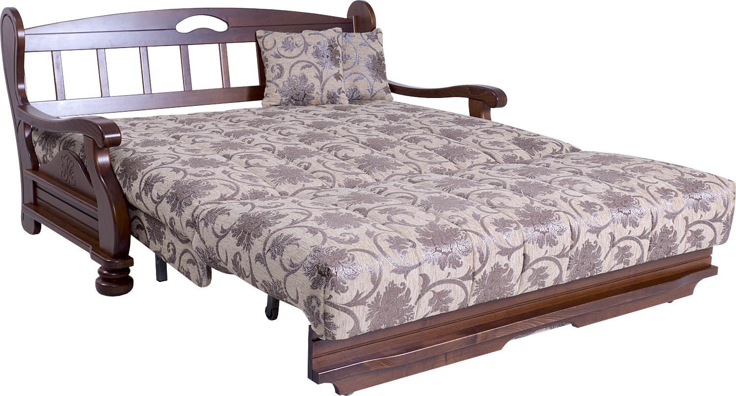 Диван аккордеон с деревянными подлокотниками