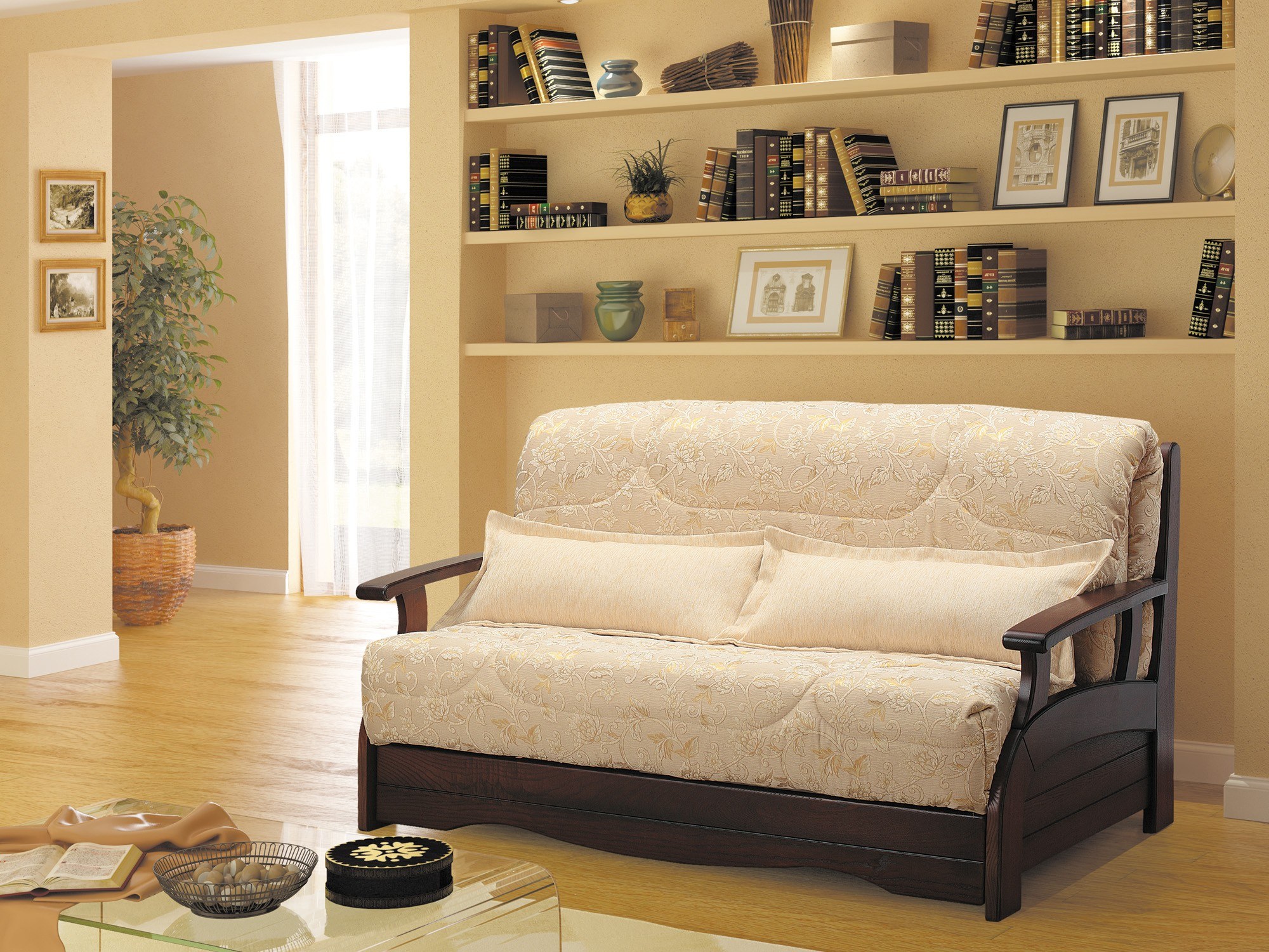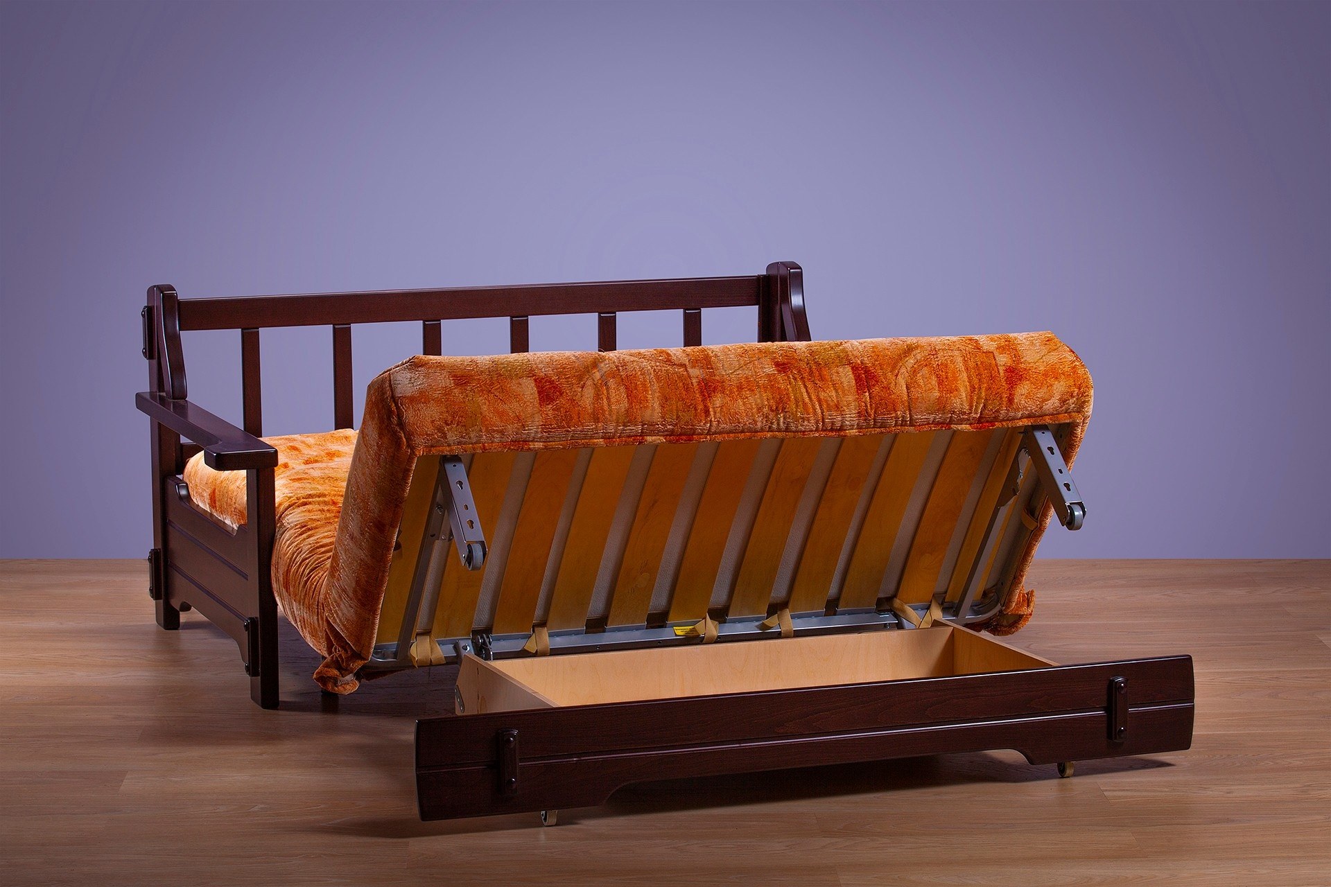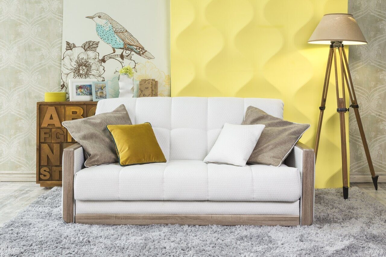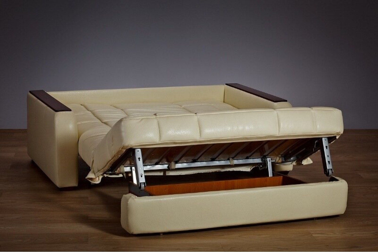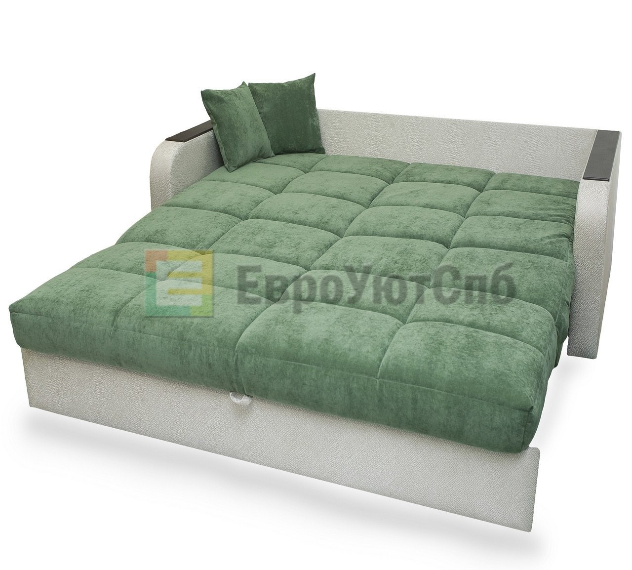 Диван аккордеон с деревянными подлокотниками