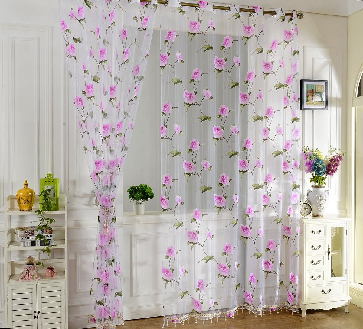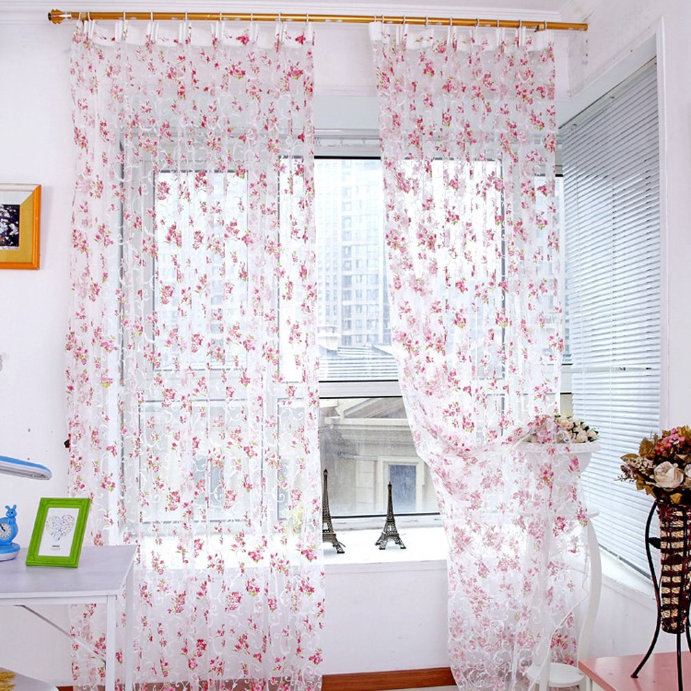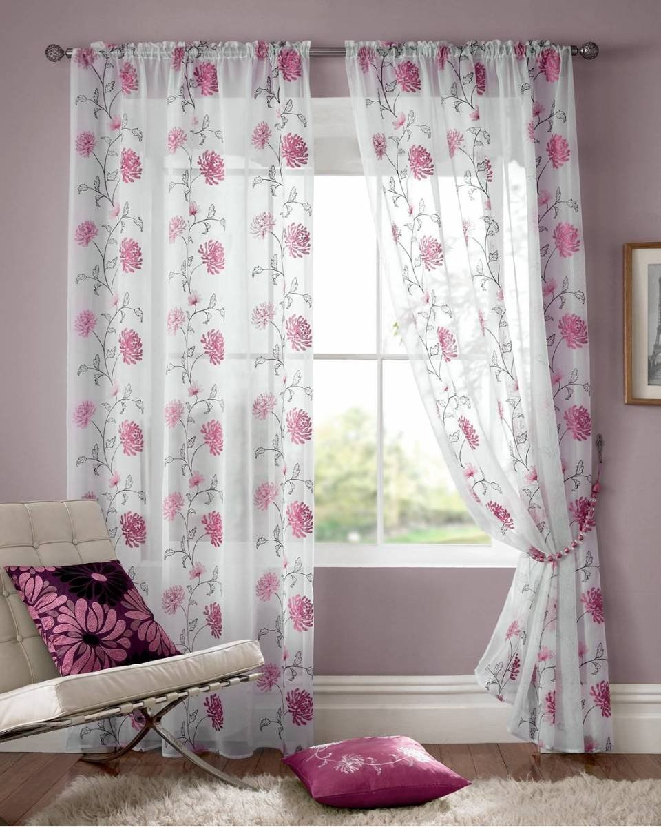 Тюль в цветочек в интерьере (41 фото)