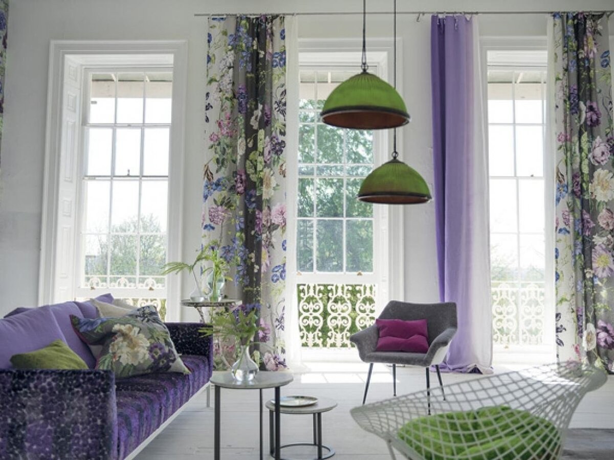 Лавандовые шторы в интерьере
