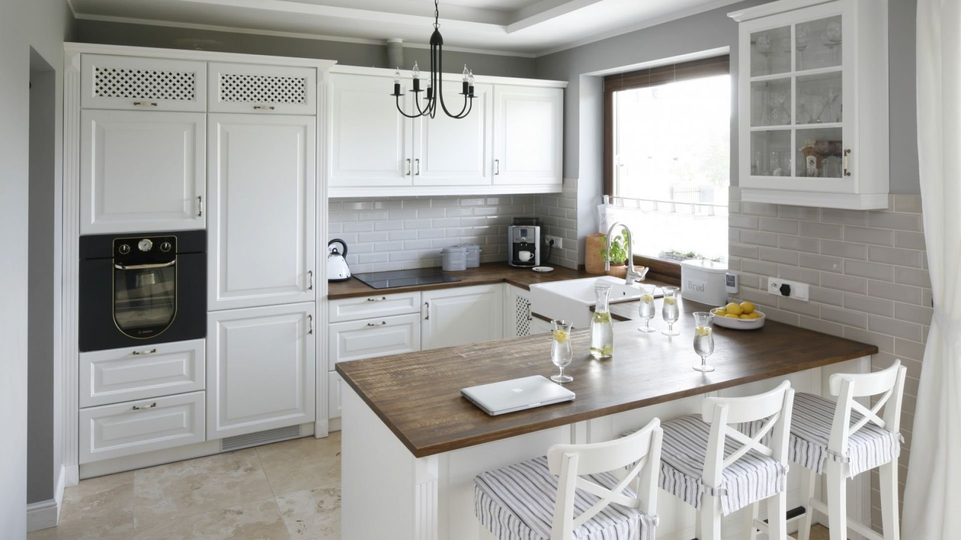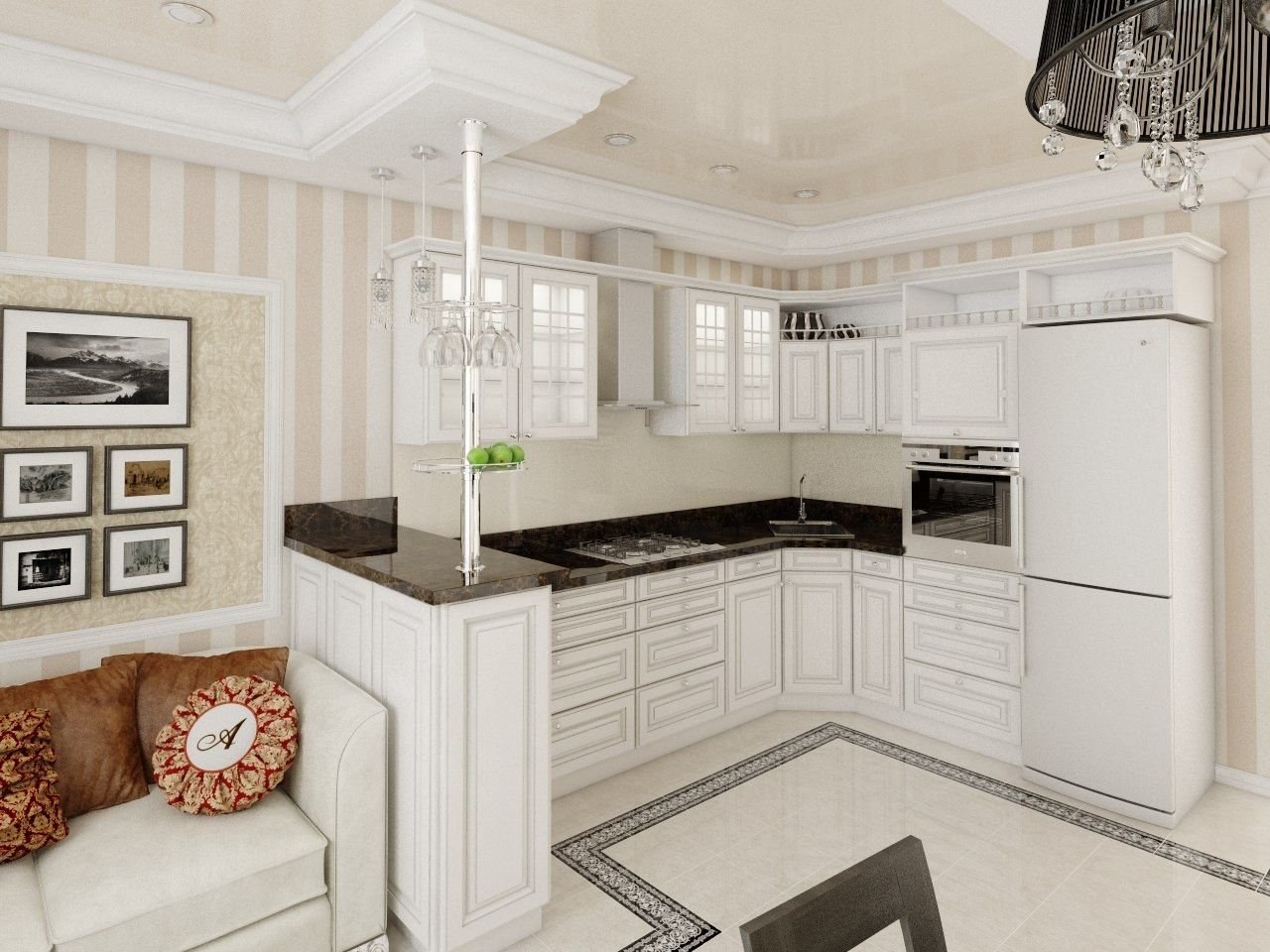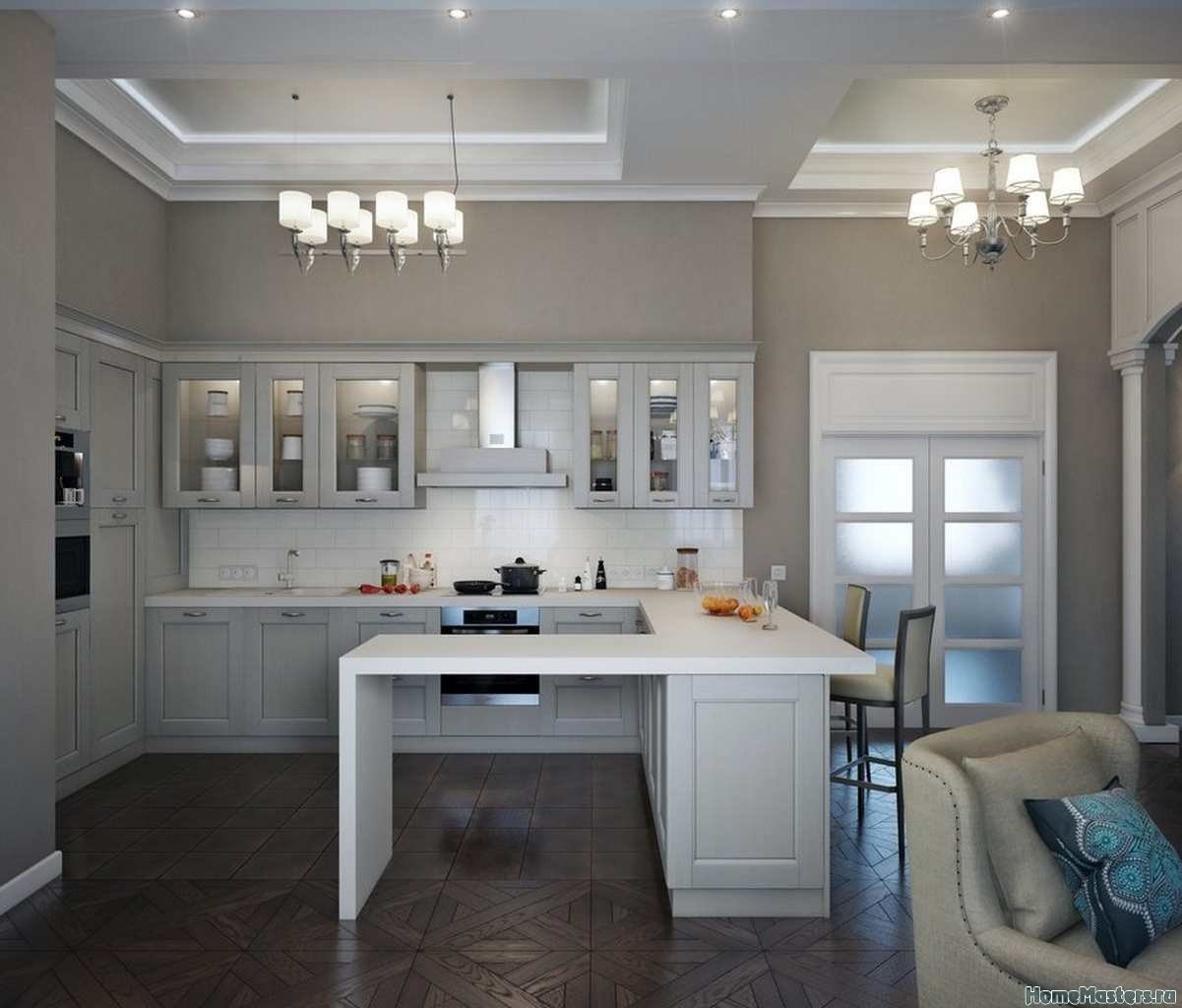 Кухни в неоклассическом стиле с барной стойкой