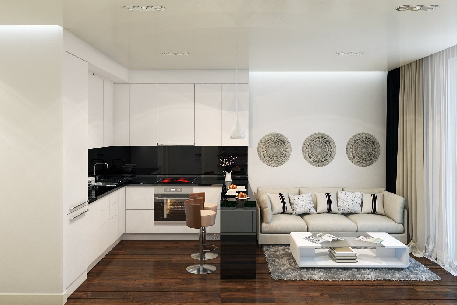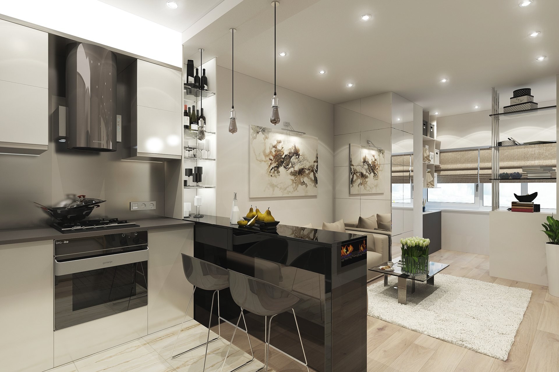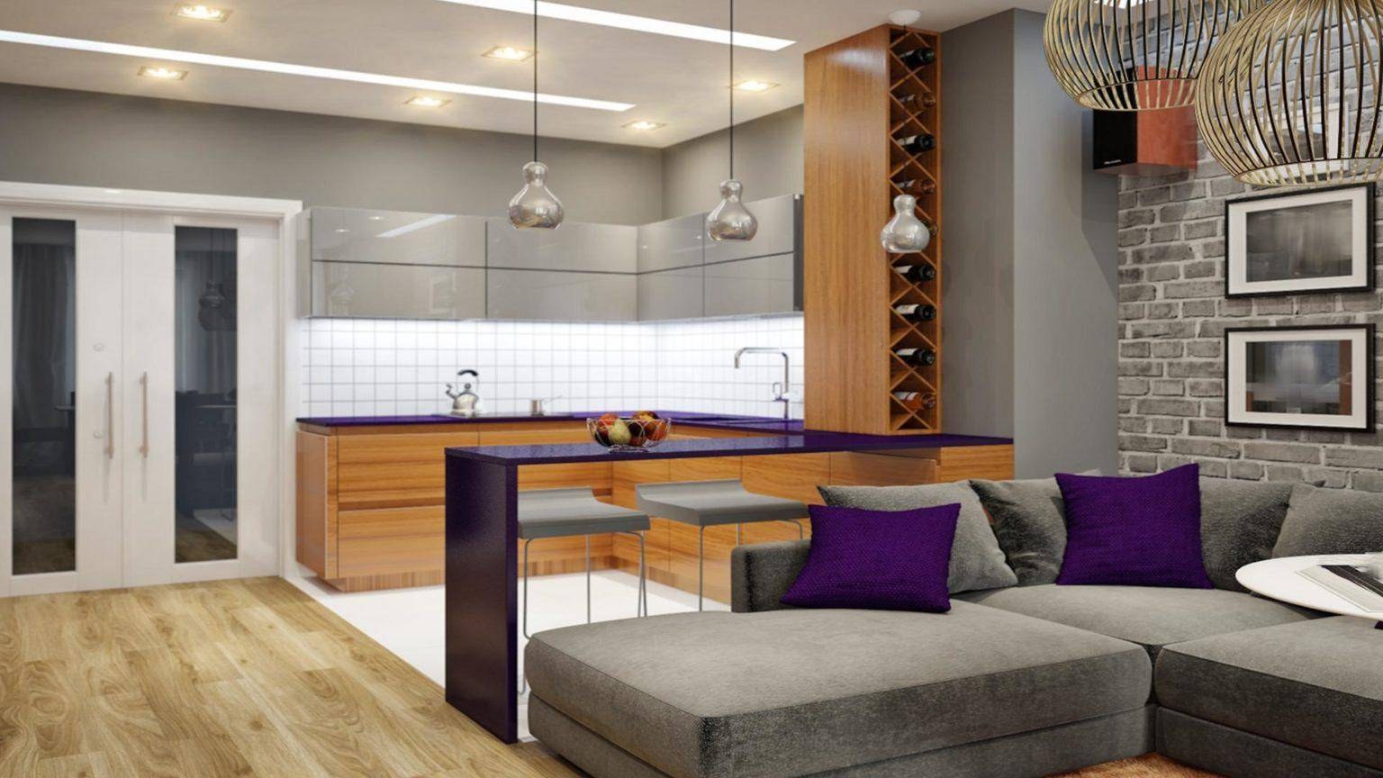 Кухня гостиная с барной стойкой