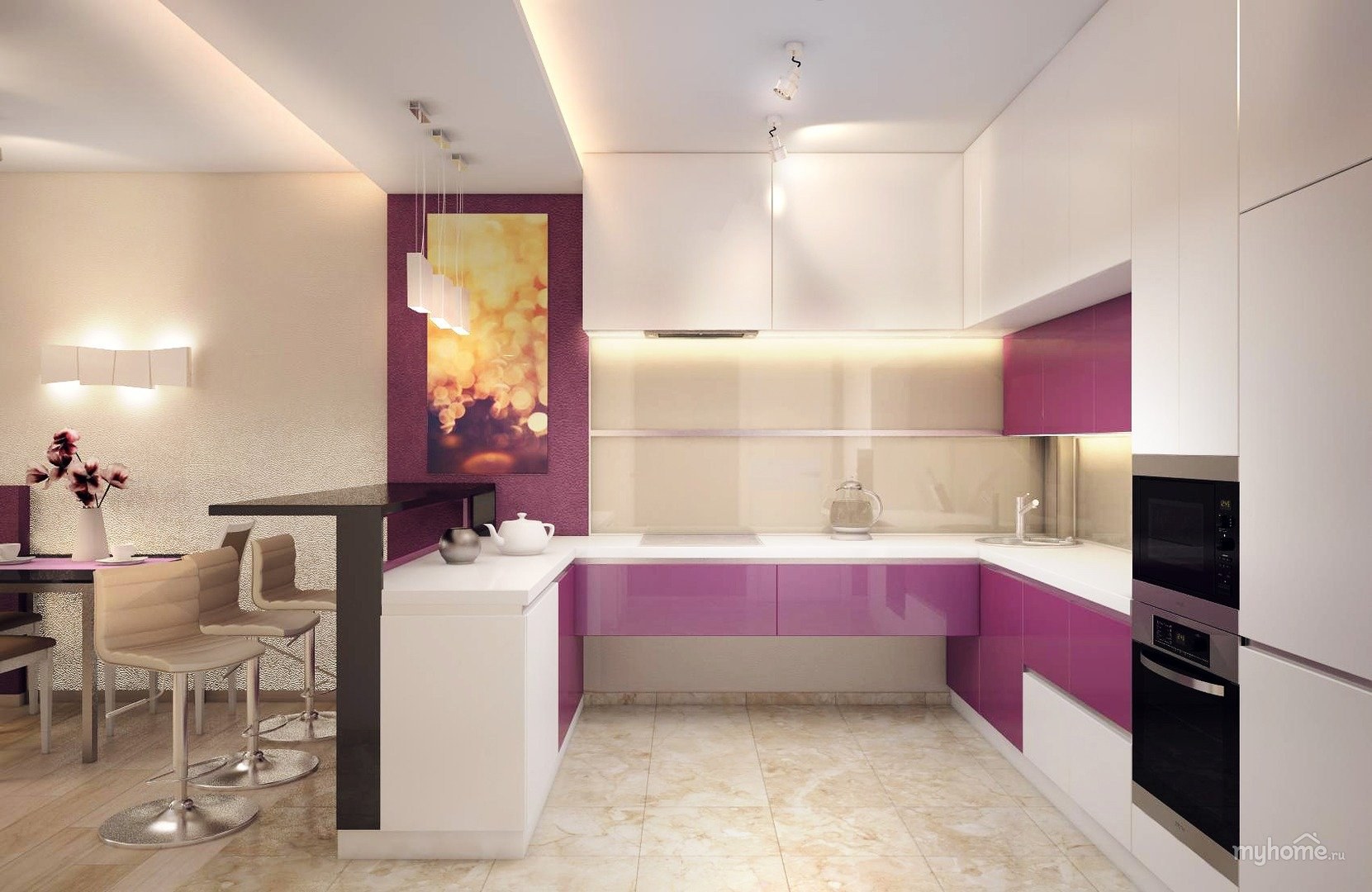 Кухня 9 кв метров с барной стойкой