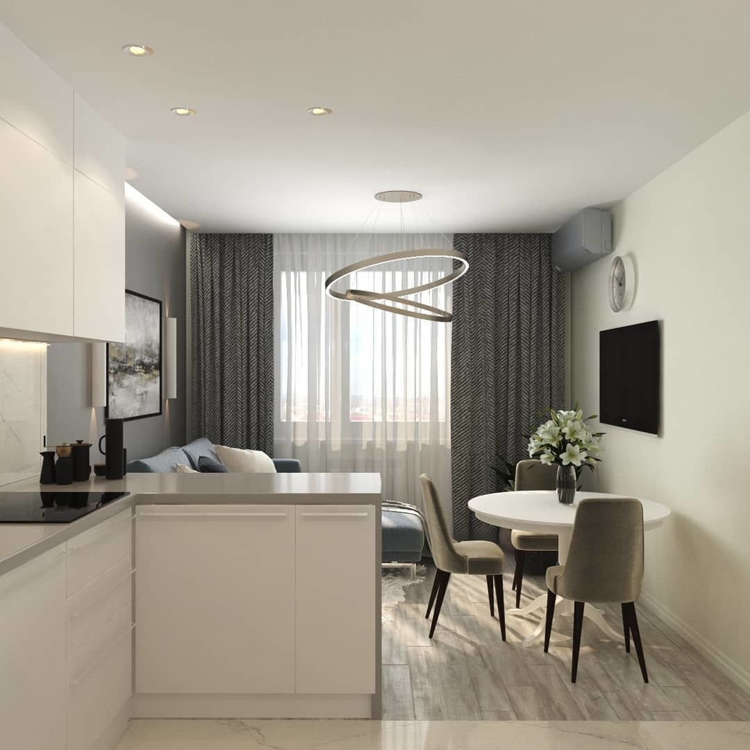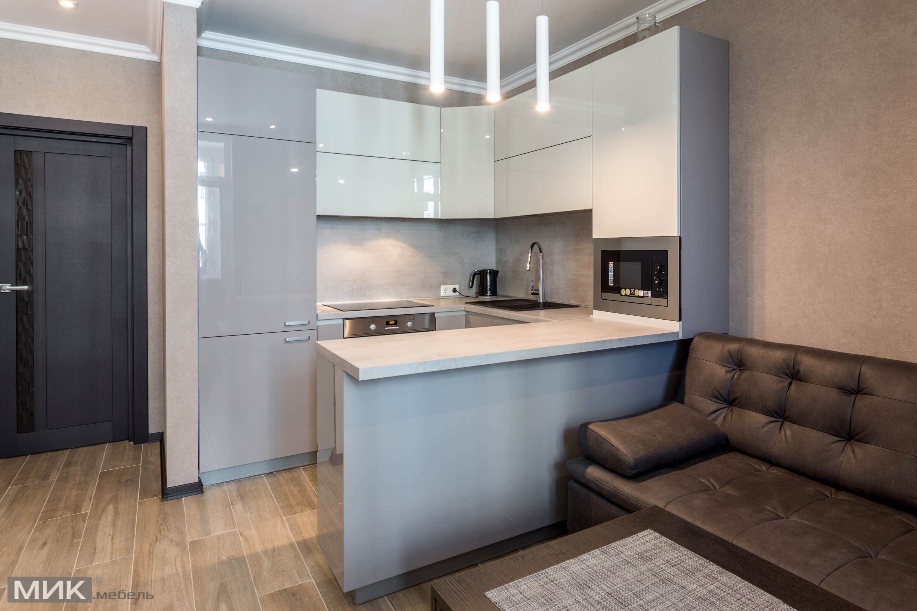 Кухня в студии 20 кв.м с барной стойкой
