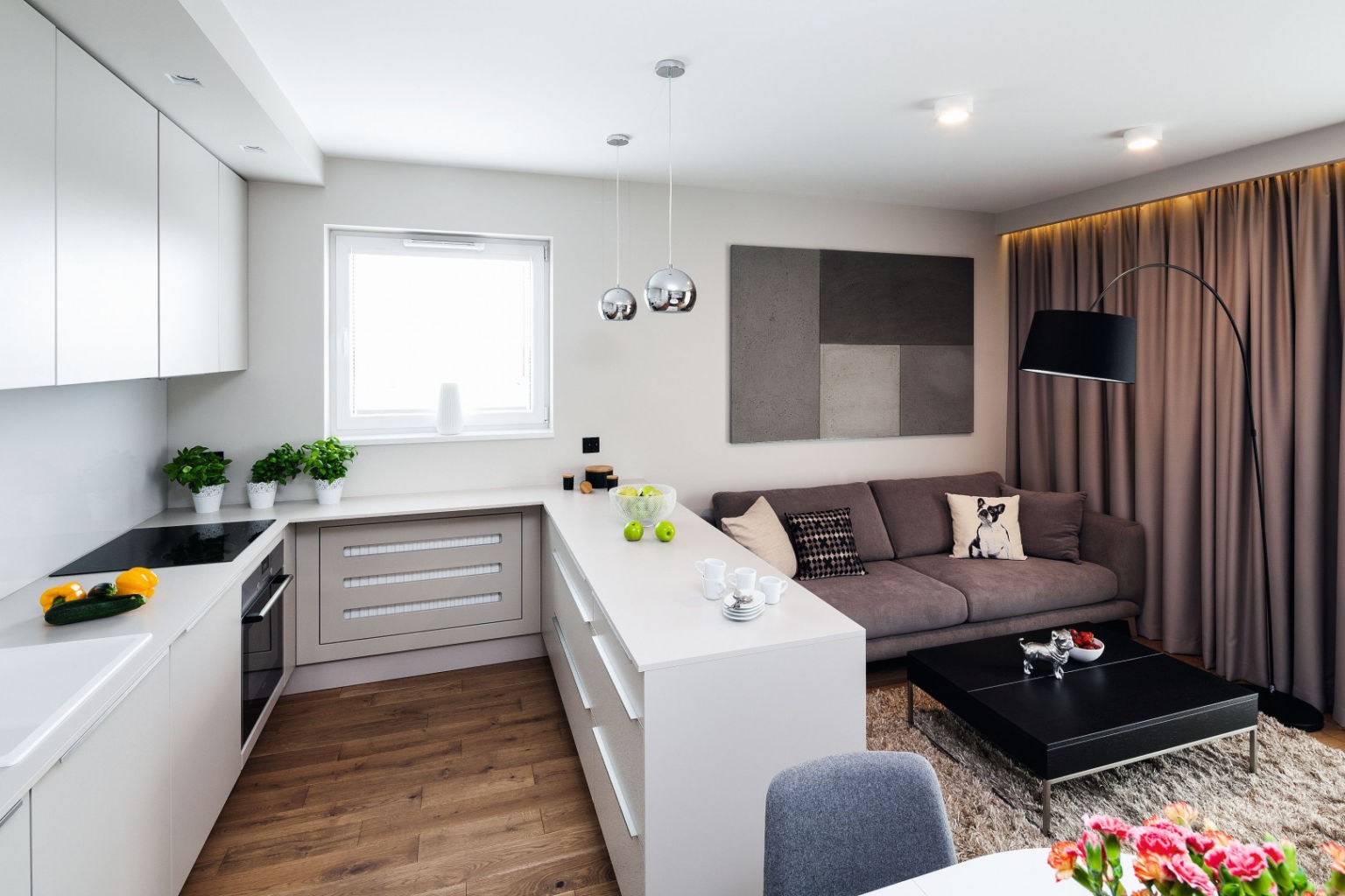 Зонирование кухни и гостиной