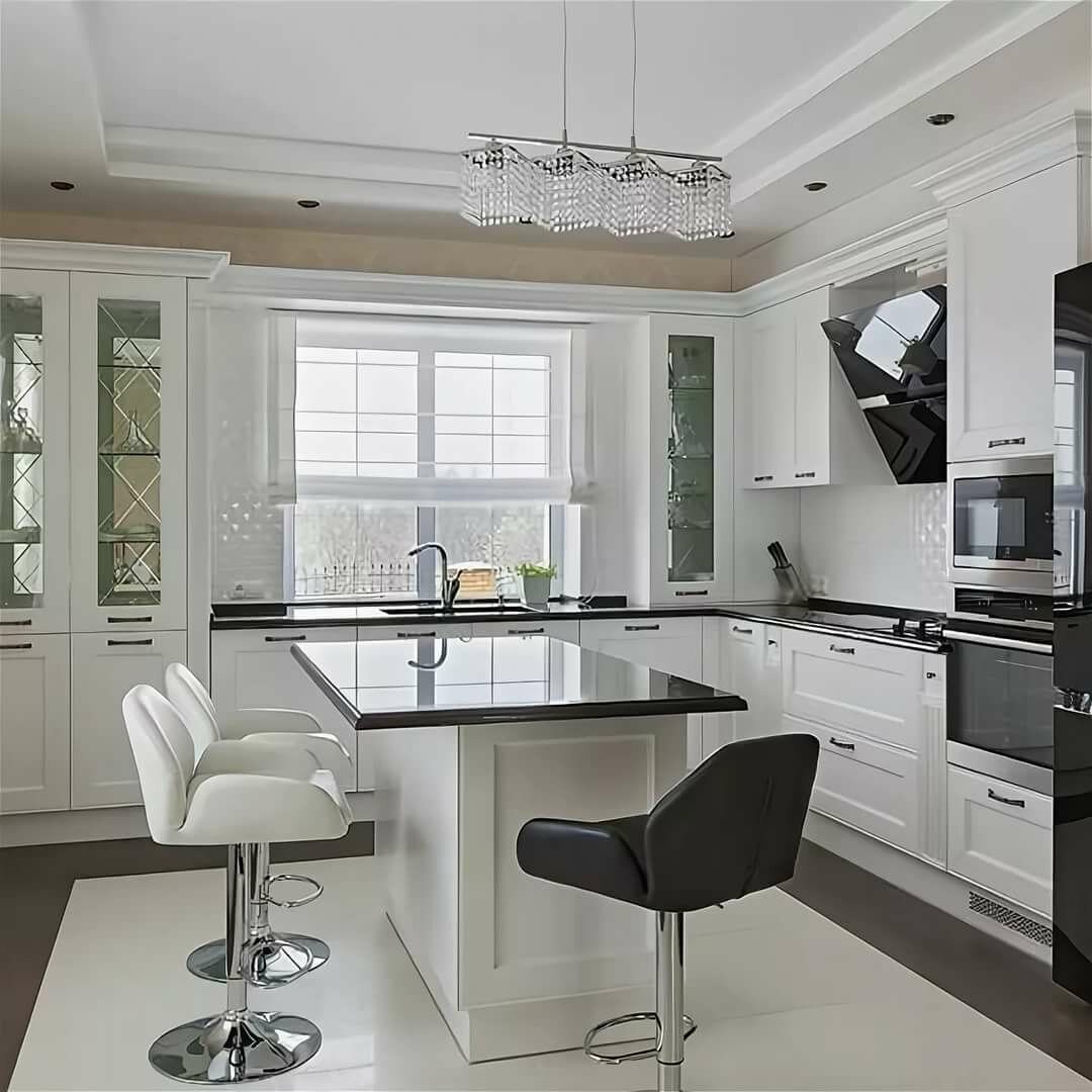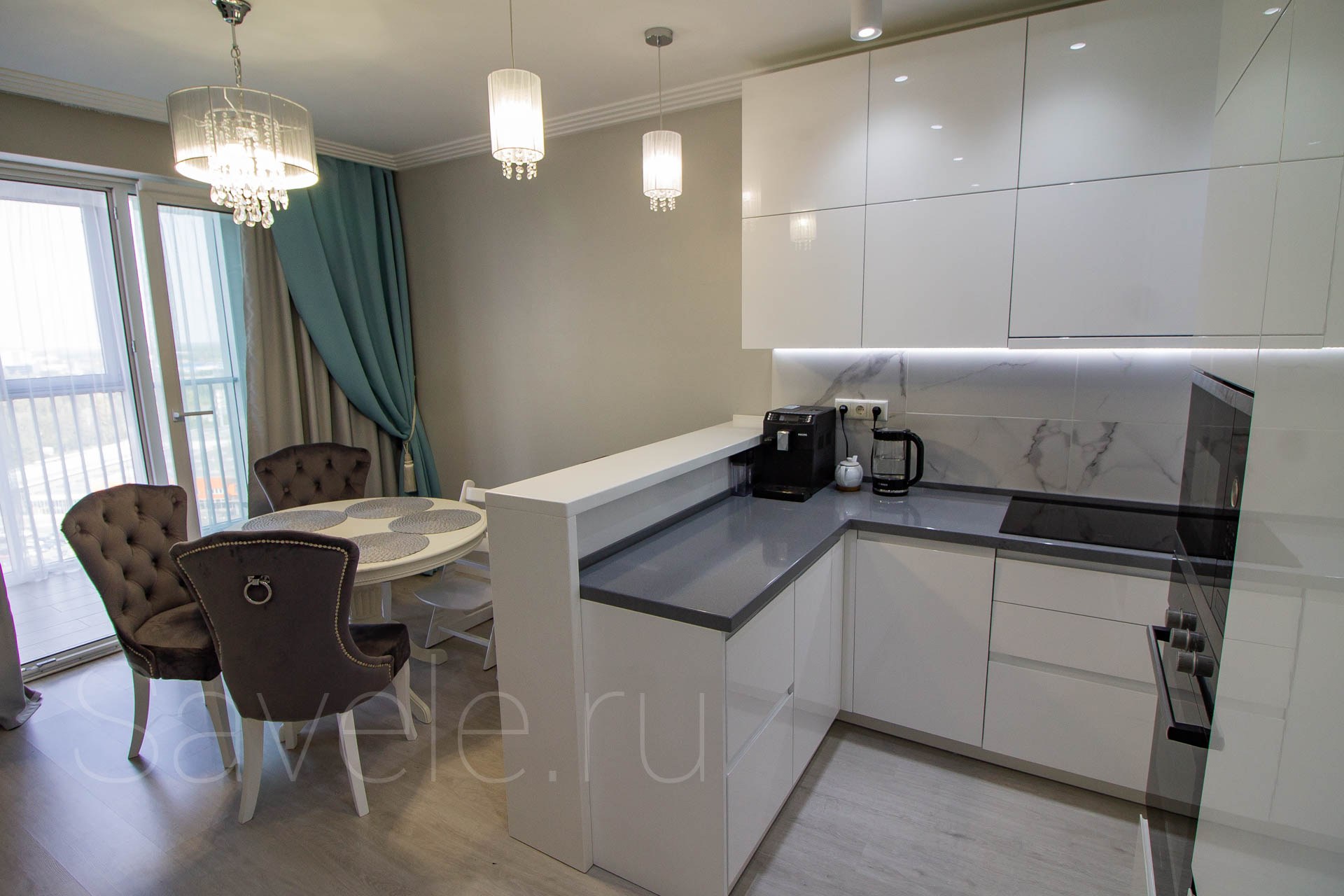 Белая кухня с барной стойкой