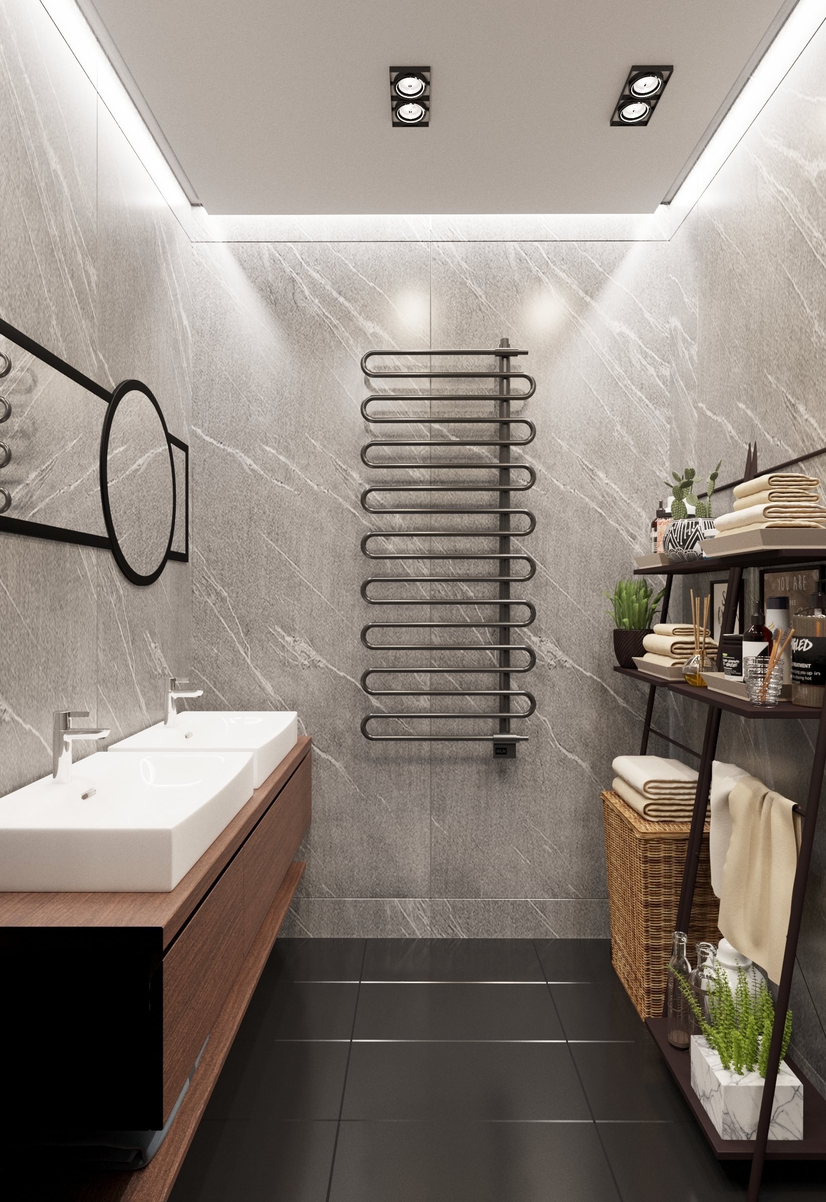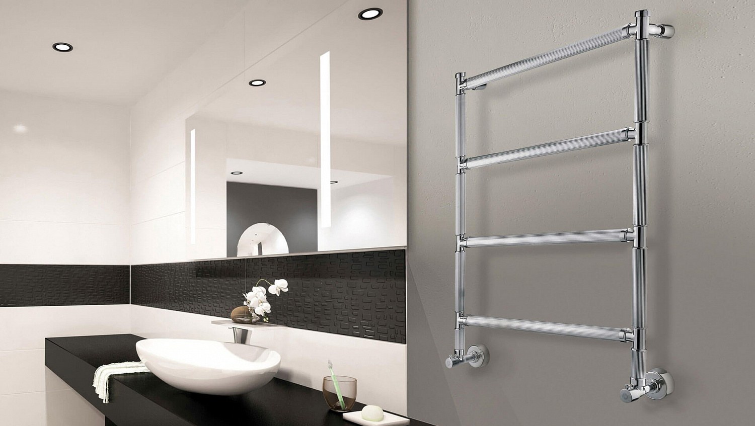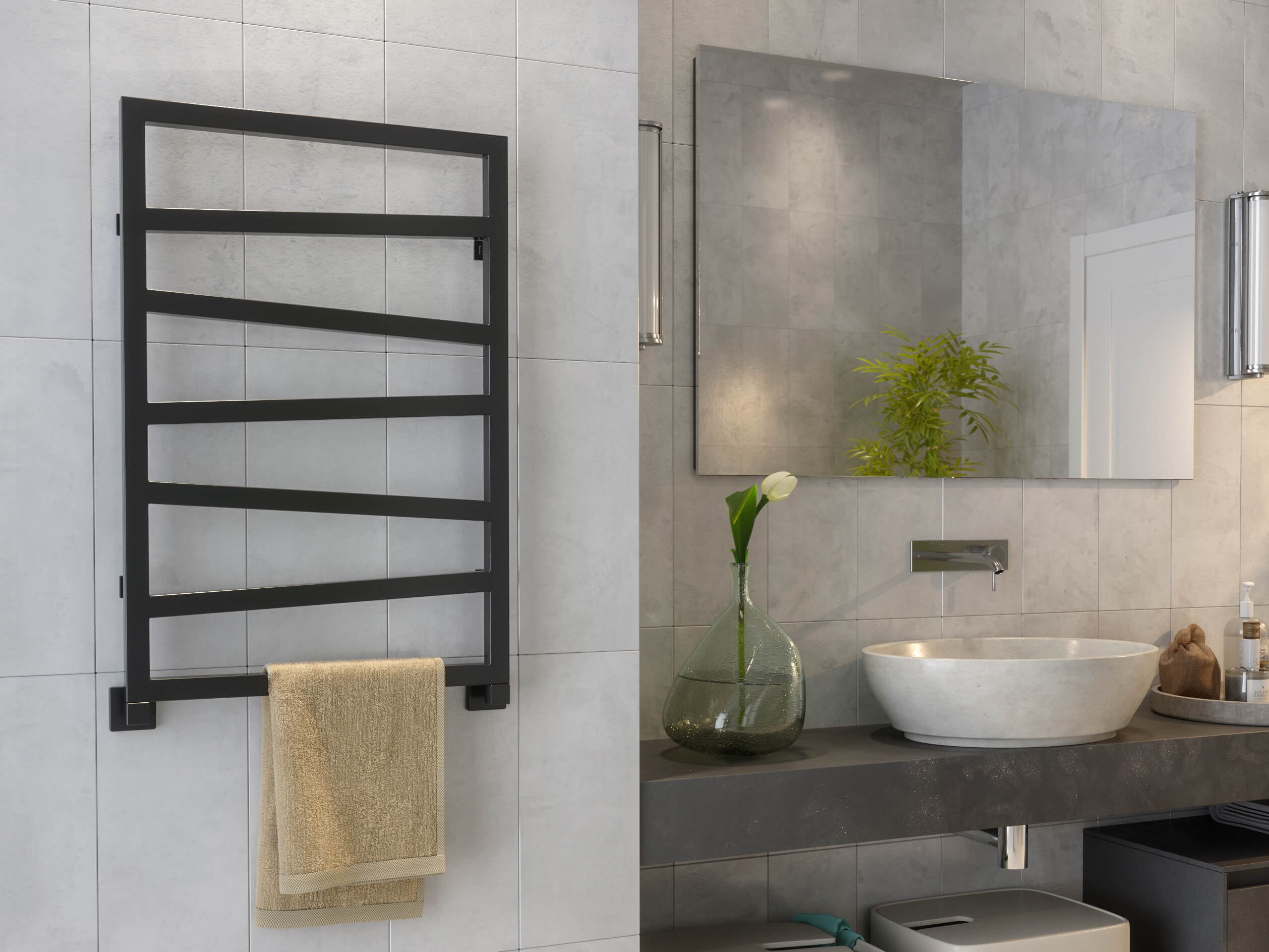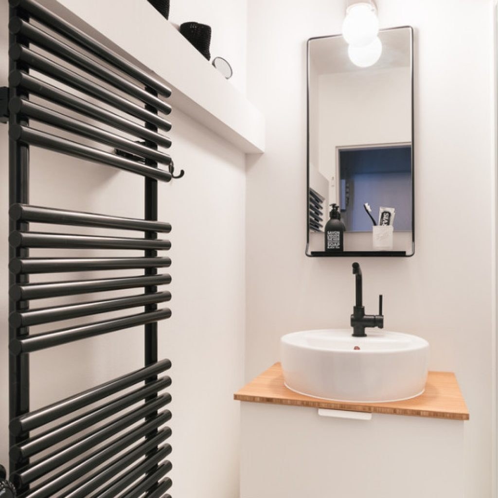 Черный полотенцесушитель водяной в интерьере (61 фото)
