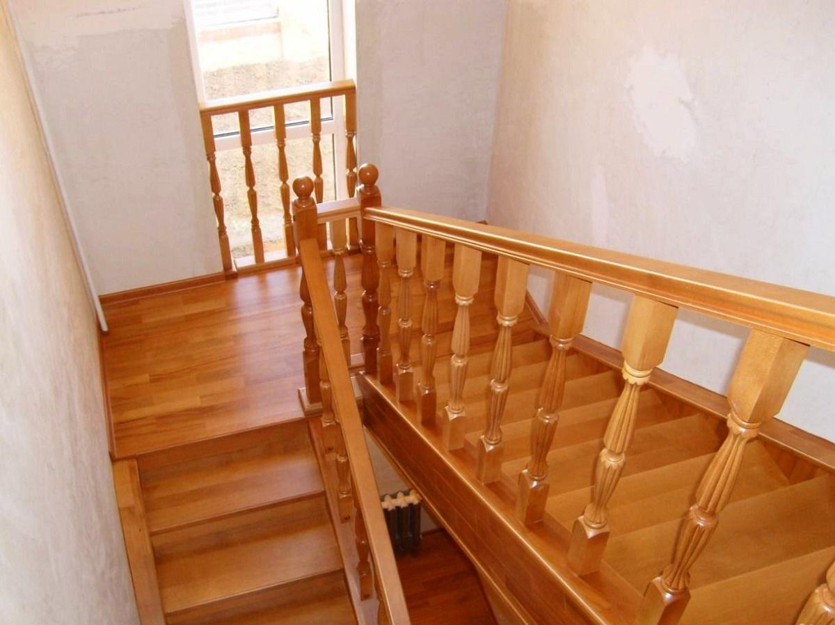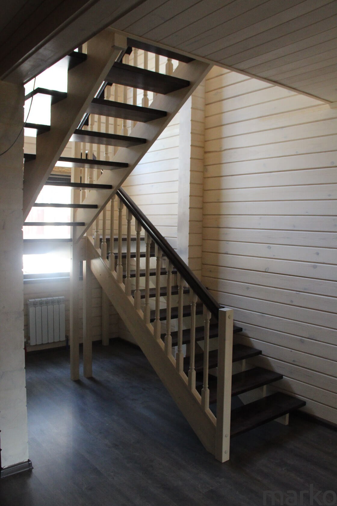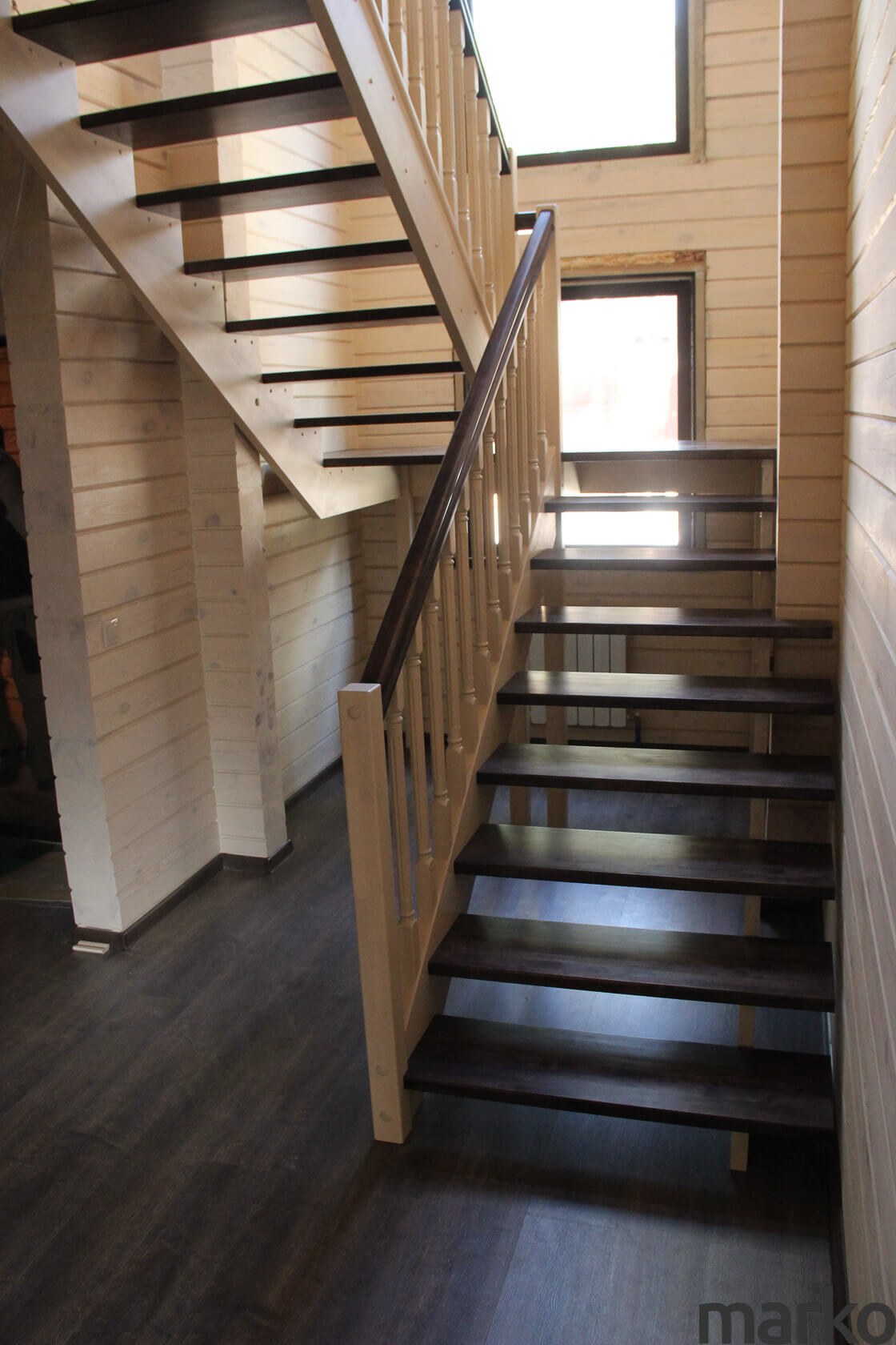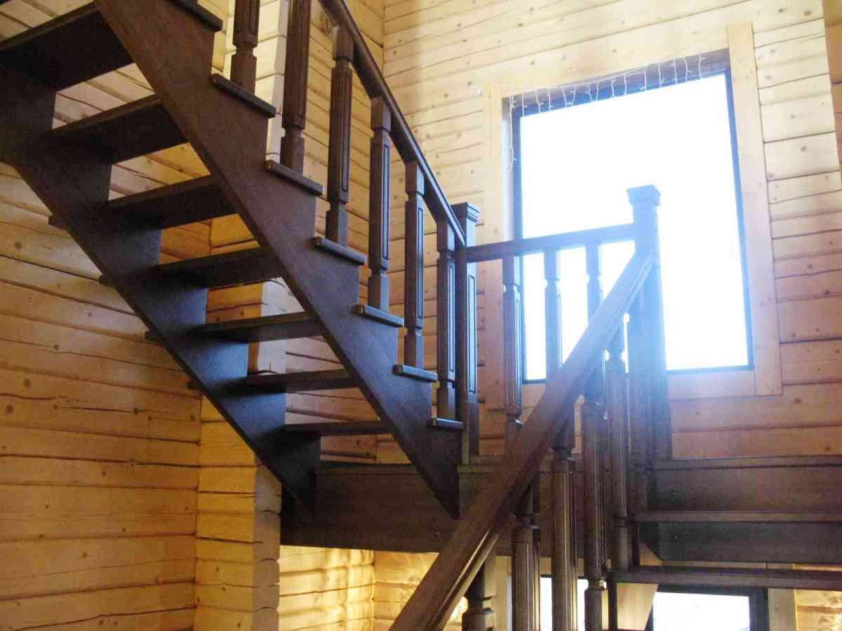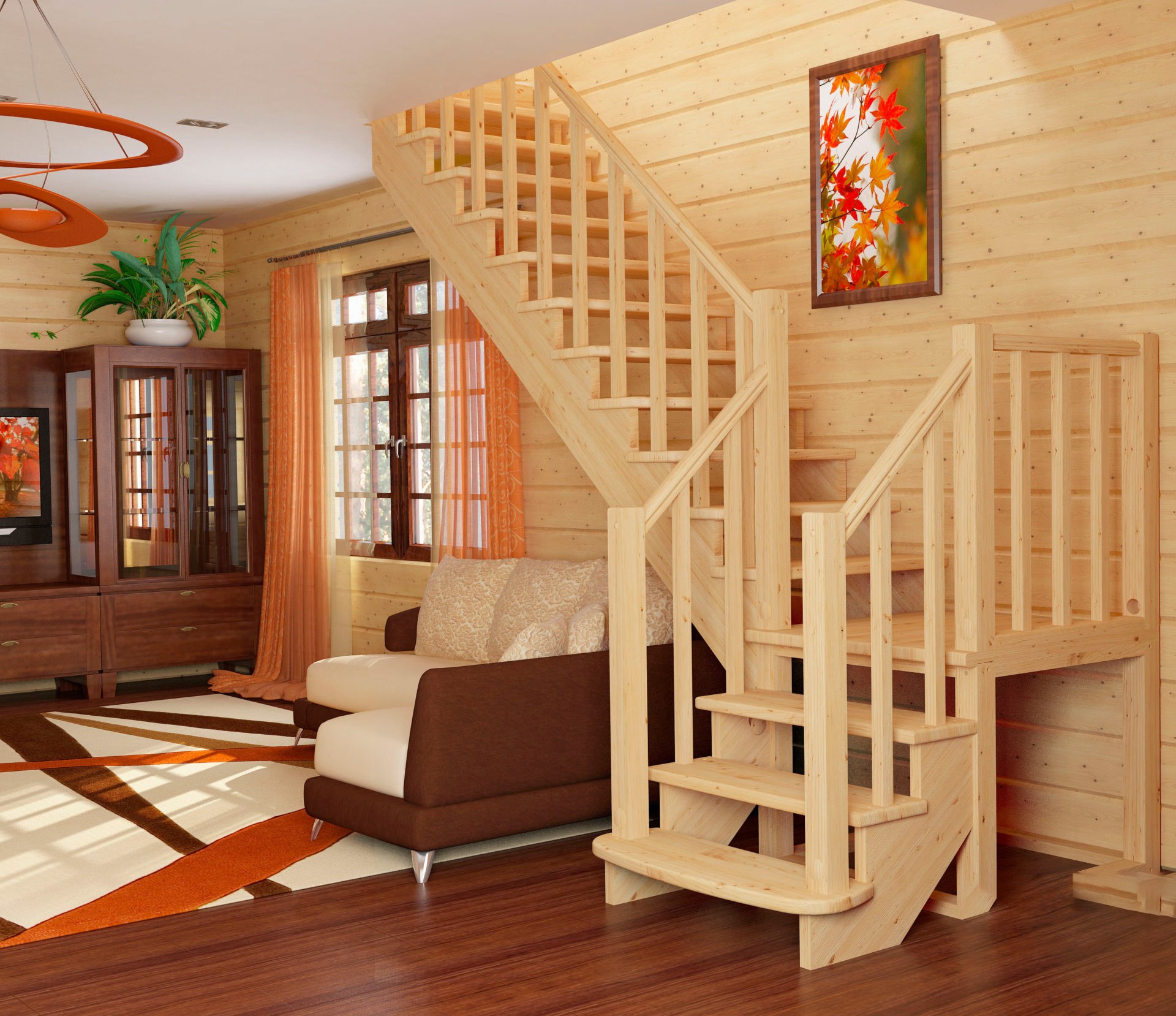Лестница на второй этаж деревянная с площадкой в частном доме (59 фото)