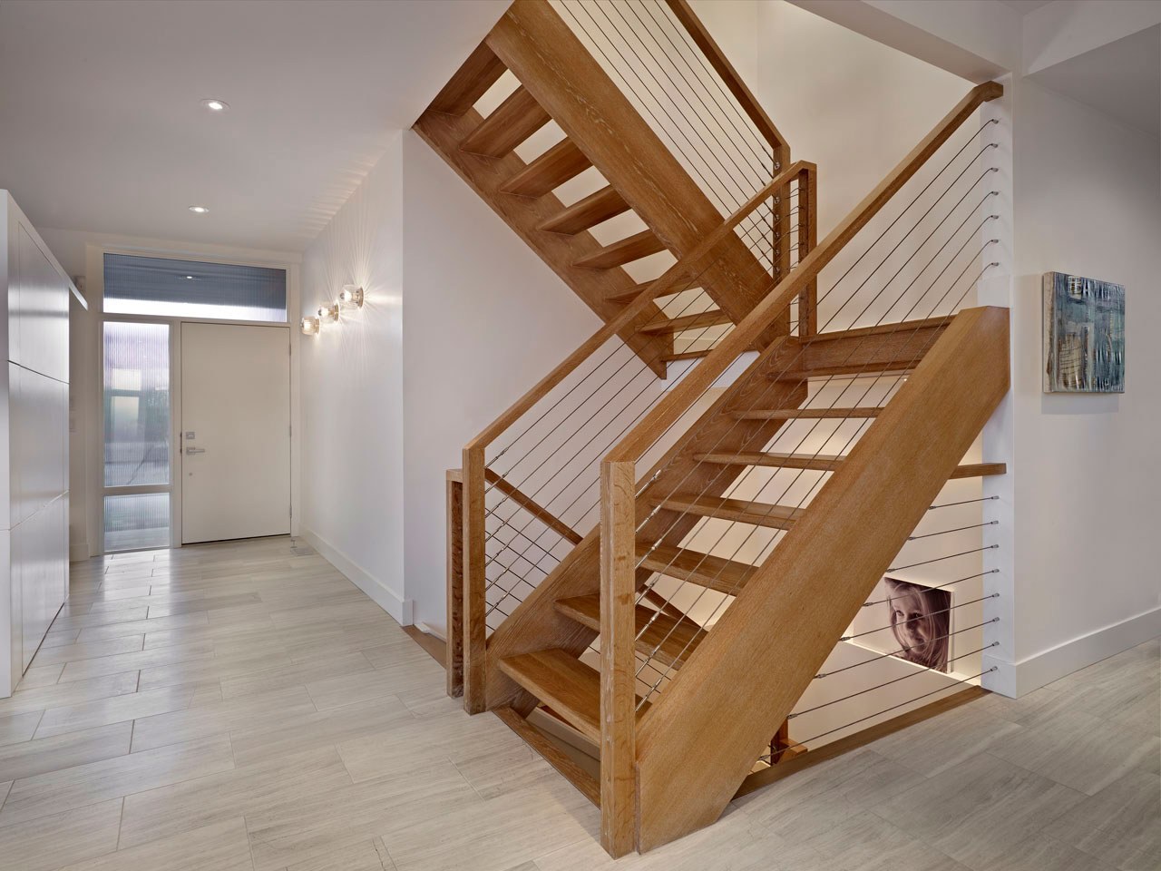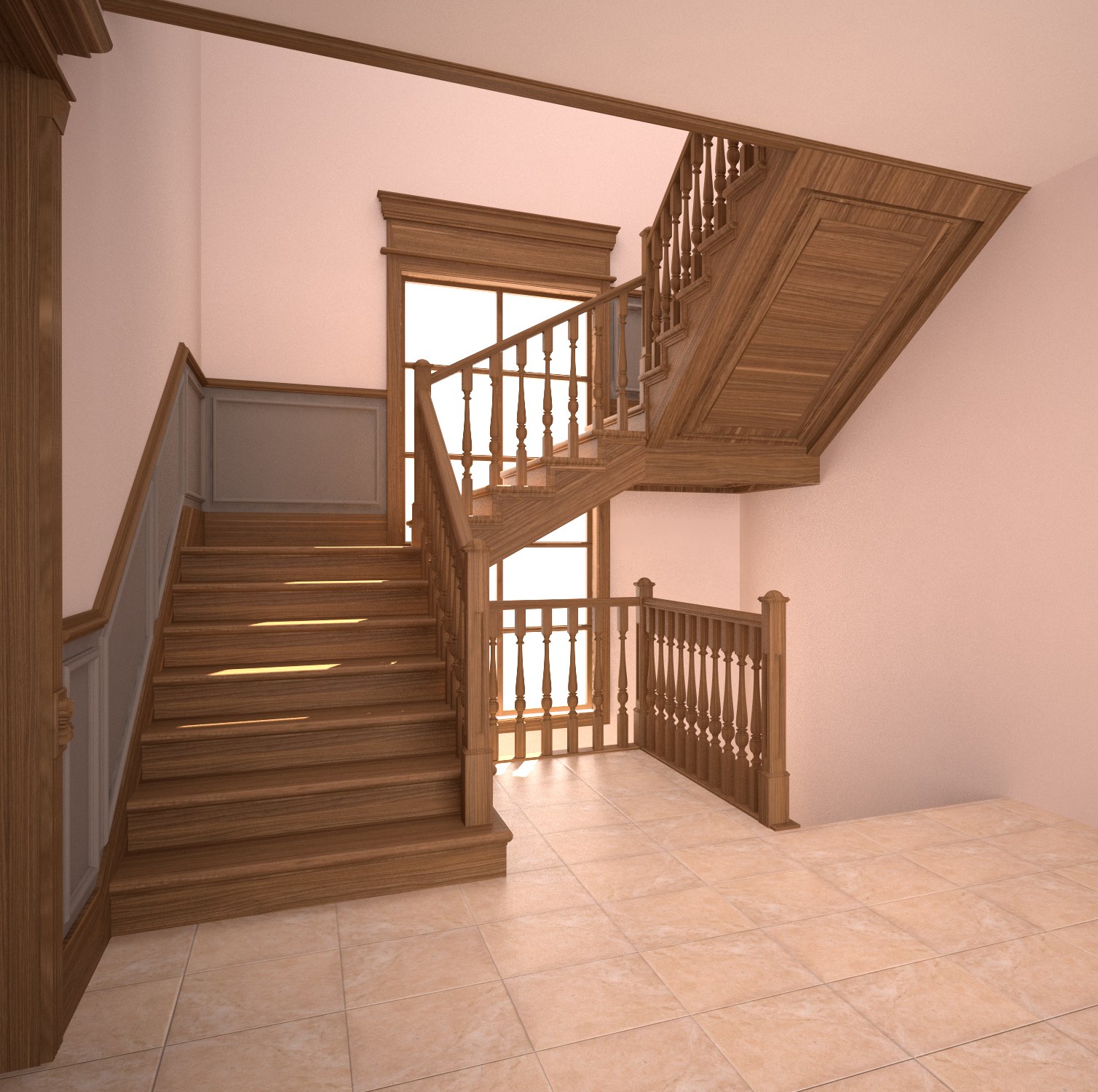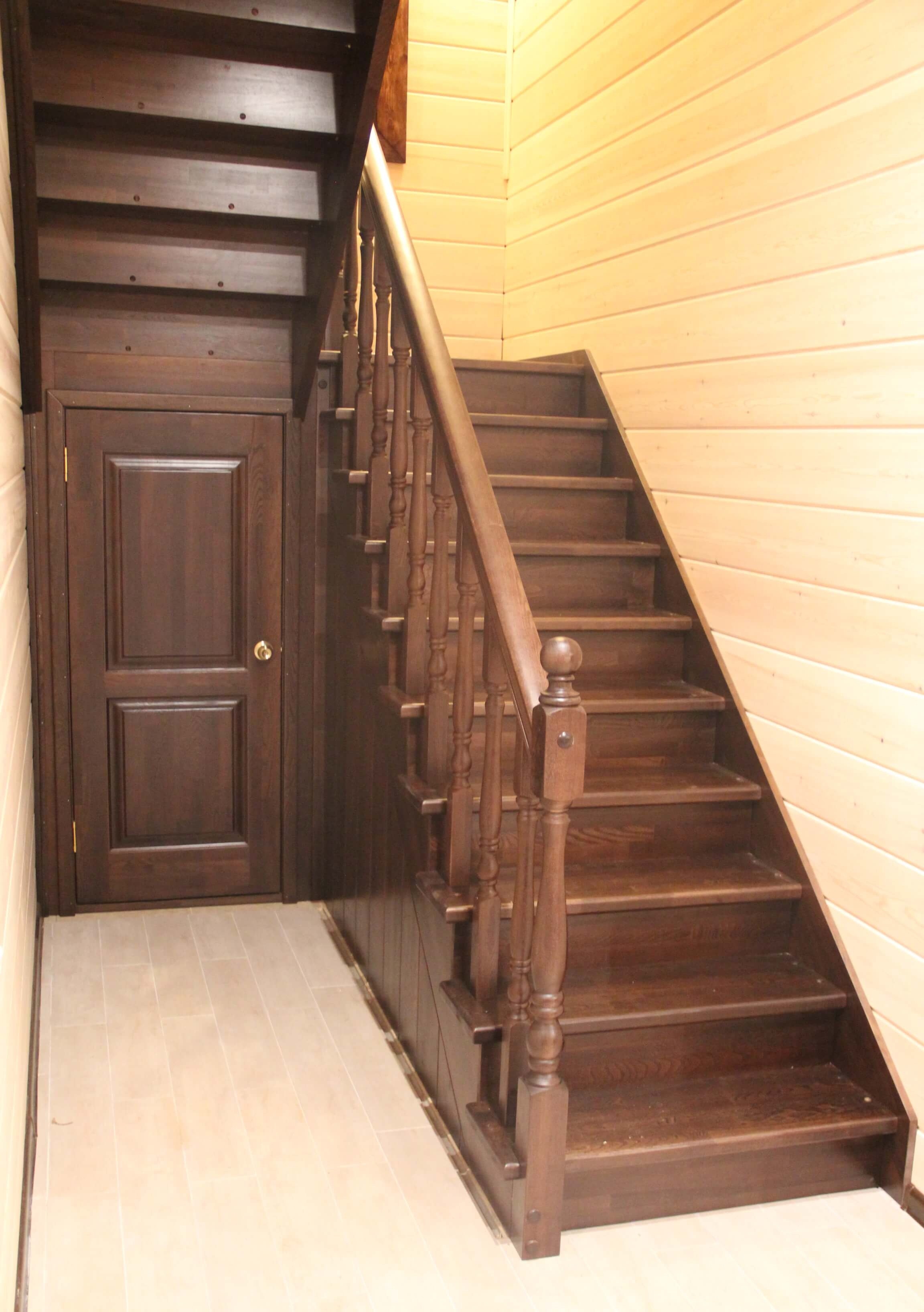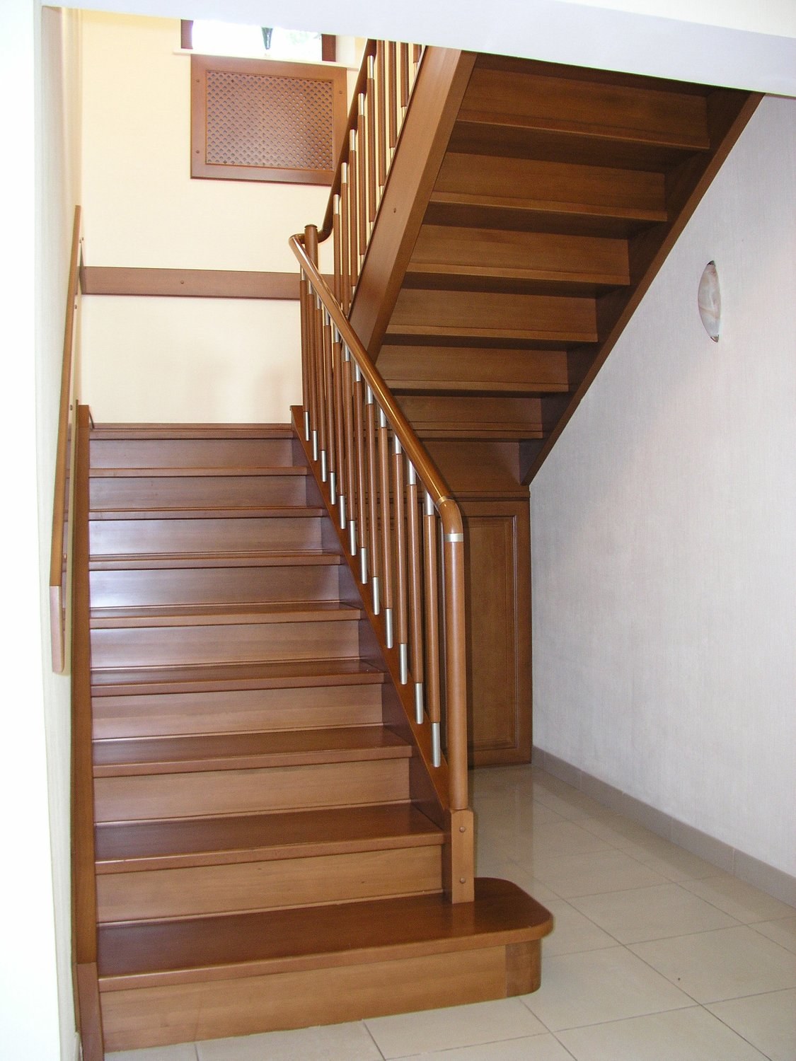 Лестница на второй этаж деревянная с площадкой в частном доме (59 фото)